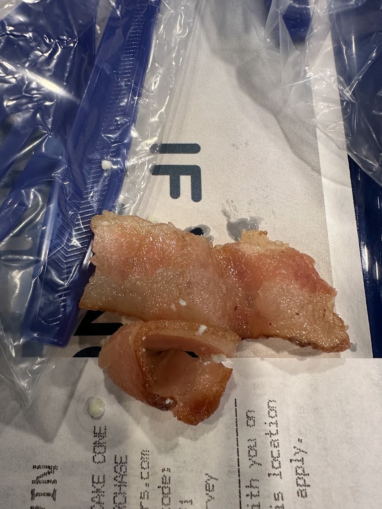 Salad didn’t have much lettuce. Very little Bacon and what was there, was not crispy. So if you like a little rubbery fat ……. Blue cheese, just a little of that too.