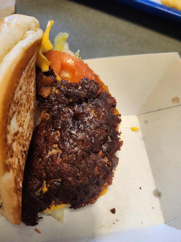 I ordered at the drive-thru. 1 patty mushroom and swiss...absolutely no flavor whatsoever. I also ordered cheese curds which were obviously deep fried in the same grease used to fry the fish. They were horrible.