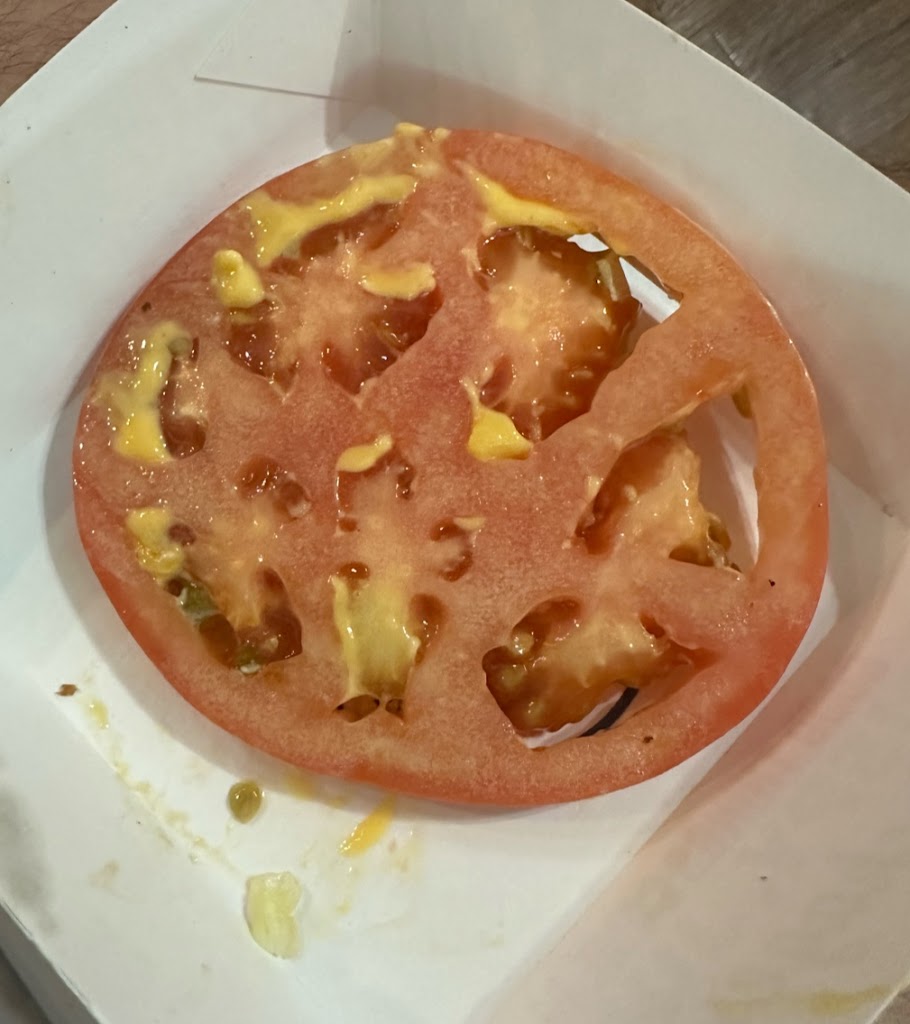 Got the biggest slice of tomato in my life on a double deluxe burger. Thanks Mexican Trinity for this huge slice, I’m not that big of a fan of tomatoes though, but thanks anyways.