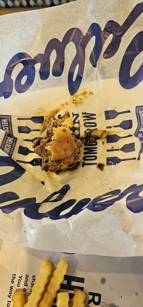 Service is good as usual nice workers but I can tell the restaurant is severely understaffed when you wait for your food for 25 minutes in the drive through. My burger today was not good. The buns were both totally soggy and completely saturated with cooking oil and not really edible for that reason. My dogs liked it though. Food is usually decent but not today.