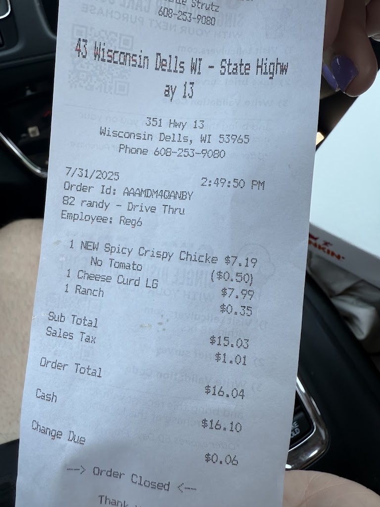 Went thru drive thru on 9/15/25. Placed my order and with senior discount it came to 29.17. I wasn’t paying a lot of attention at first when I had the money ready cause I seen it on the screen where u read your order. Anyways, I handed my money, a $20 and a $10 to girl at window. She informs me that the total is $39.17. I’m thinking rather expensive, but get another $10 out of my wallet and hand it to her. And say to my daughter that don’t seem right so I ask for the receipt and yes the total was 29.17. By then we were in the waiting line. Say something to deliverer, and he gets the manager. This guy…lol…can’t do basic math. But takes my number and says will call in morning after checking register. Mind you I’ve been going to this Culver’s almost on a daily basis. Spend too much money there! Well won’t anymore! Guy calls me and says he watched the camera which I can tell he didn’t. But states the register didn’t have an extra $10 in it. He tell me the change I got back was….get this…..$1 and change. So tells me he didn’t watch camera and can’t subtract. I would and did only get loose change back. So the chic at window ripped me off $10. But he wasn’t calling me a “liar”. Sure buddy. Go learn basic math. You obviously aren’t cut out to be a manager if you can’t see me on camera, going back into my wallet and handing her the extra money and you tell the customer basically that she’s a liar. I will never go back to the wis dells Culver’s again. Not with thieving employees and lazy managers.