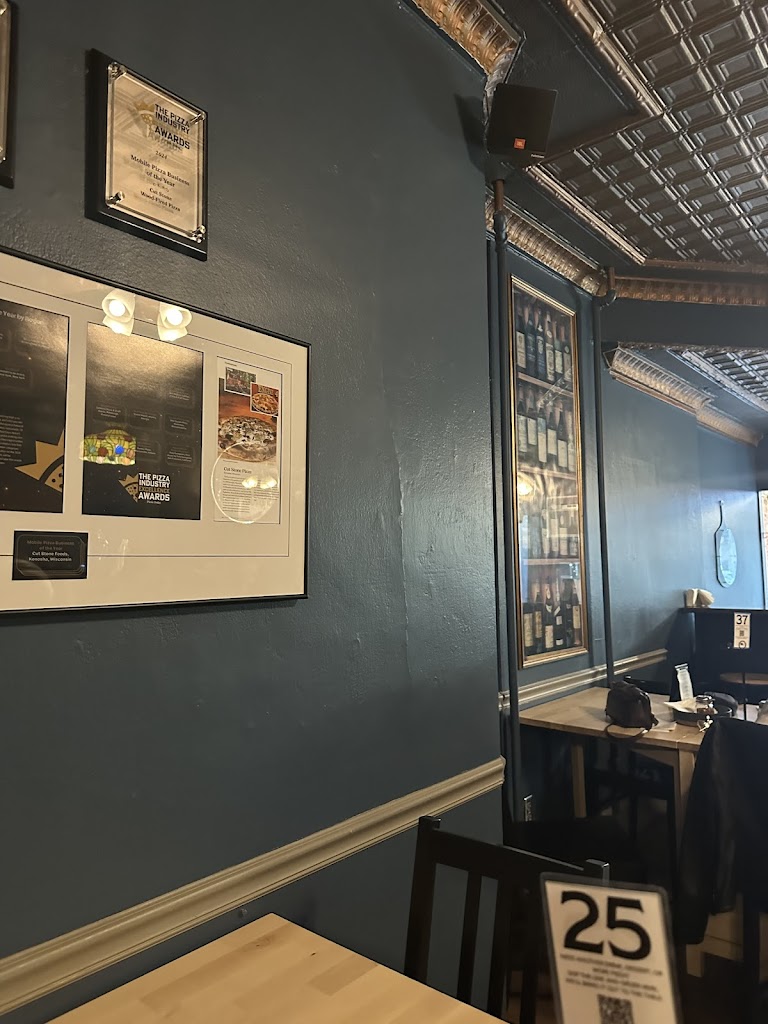 Wonderful little restaurant tucked in downtown Kenosha. Easy to order, at the counter, ace they bring the food and drinks to your table once you’ve paid. Excellent choices of favorites on the menu, or build your own pizza. They also offer sandwiches and other food if you aren’t up for pizza. (but you should try it!) very cozy atmosphere and friendly staff. The pizza Riki’s favorite pizza choice on the menu was absolutely delicious! The crust was nice and crispy, and the flavors, garlicy and savory. Highly recommend, it’s a very nice experience! Add a beer or cocktail to make it complete!
