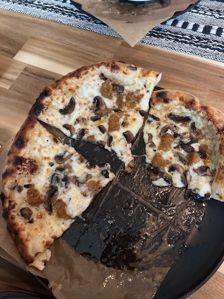 Each pizza is a personal 10-inch. I had the Engine 4 (pepperoni, Italian sausage, banana peppers, and a little chili heat)—phenomenal. I loved it and ate the whole thing. My husband got the Jandel (good, but I’m not a mushroom person), and my daughter devoured her cheese pizza.