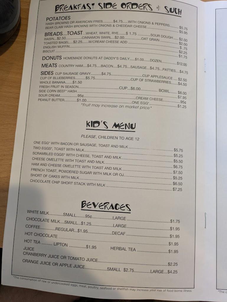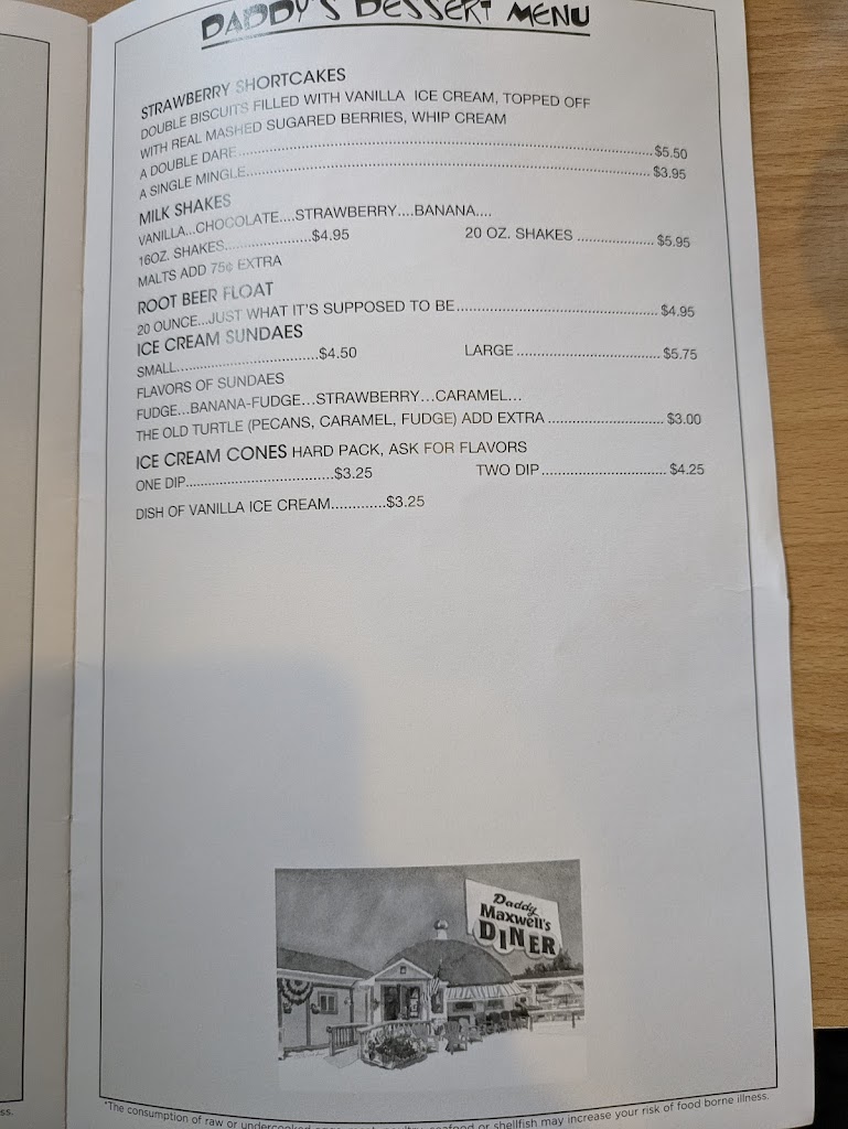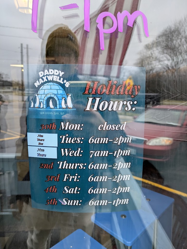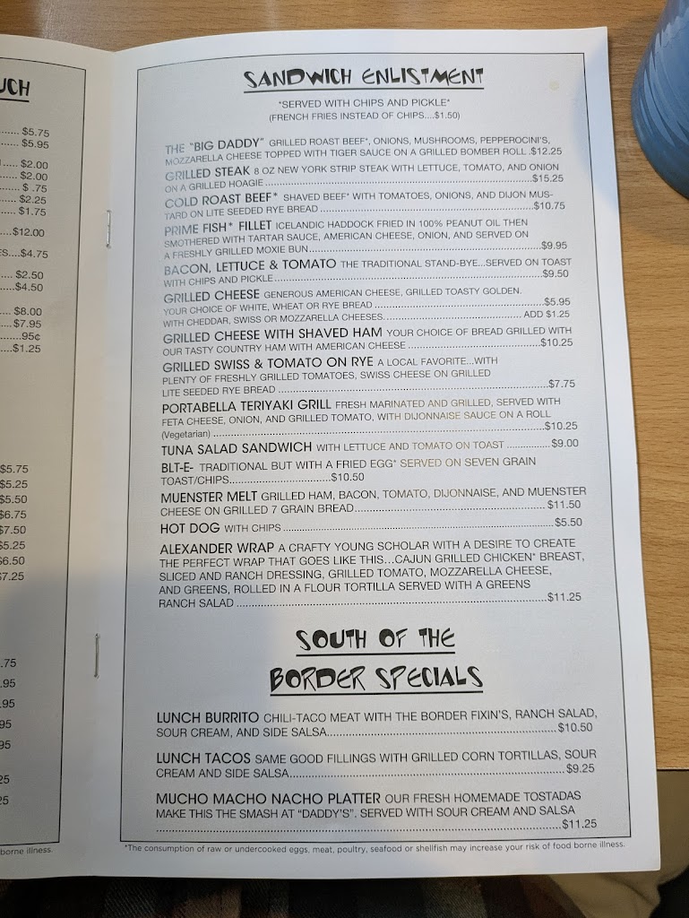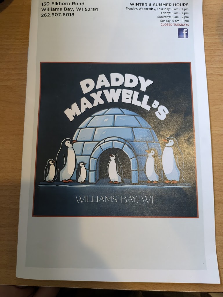 We enjoyed our lunch at Daddy's Maxwell's. I had a Great Greek Omelette with whole wheat toast and my husband had a Country breakfast (I don't know if the name is right, sorry). We both enjoyed our meals. Looking forward to coming again.