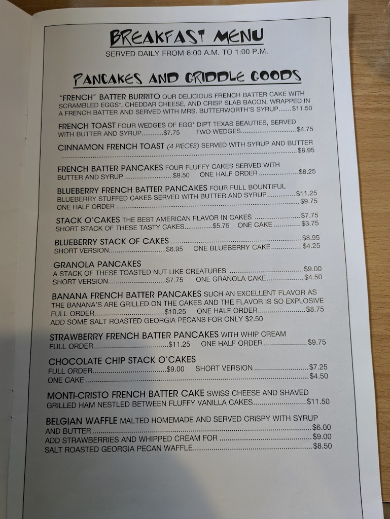 Great breakfast. Dined here many times and has never disappointed. But its cash or check only. No credit/debt