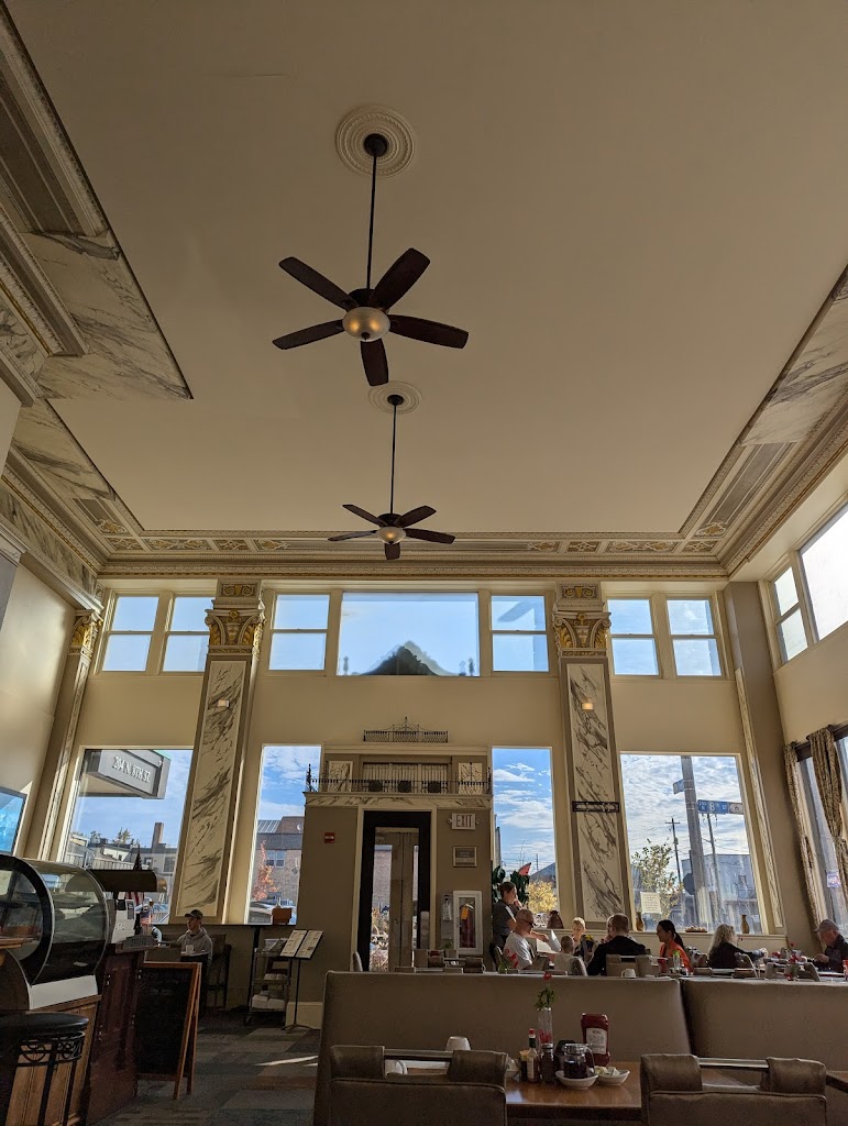 Former bank with beautiful interior. Soft music playing in the background. Attentive service & food was excellent. Plenty to eat, I preferred the hash browns. We came here for breakfast two days in a row.