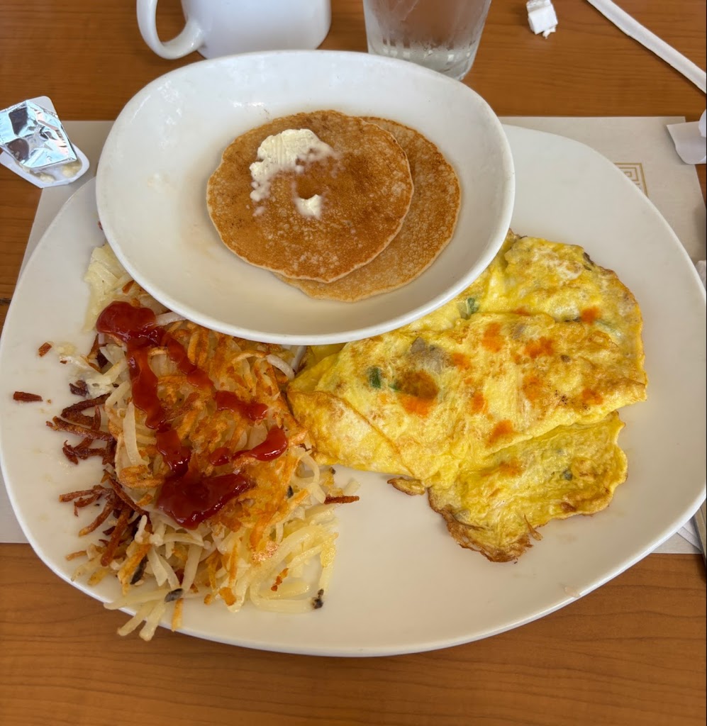 The atmosphere here is beautiful, but unfortunately the food did not compare. I ordered a scrambler with onions, peppers, and mushrooms but there was barely any of the toppings inside. The hashbrowns were alright but the pancakes were just not good. They had a sour taste to it which was off-putting, and I think they must’ve used yogurt when making them or something. But I didn’t want to finish them. Overall would not recommend for the price point.