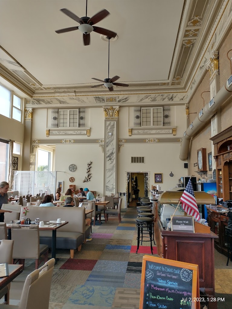 Dali's is an awesome find! We are out of towners looking for a breakfast spot. The atmosphere of an old bank is gorgeous, making it a feast for the eyes. The food was spot on. Bacon cooked to perfection, and cinnamon French toast with fresh strawberries was delicious! Scrambled eggs were fluffy, and coffee hit the spot. Husband enjoyed his Western omelet and homestyle potatoes and loved the coffee. Service was fast and friendly. It wasn't very busy when we dined, giving us extra time to sit and enjoy the atmosphere.