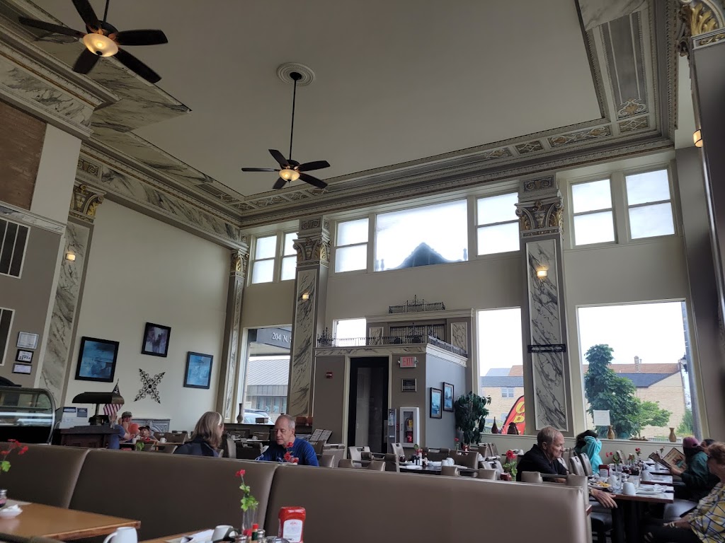 Had breakfast here before going to the Manitowoc farmers market on a Saturday morning. This is not necessarily a complaint, but portions are on the small side. Everything else was great. The building is so cool that I would go back and I can recommend.