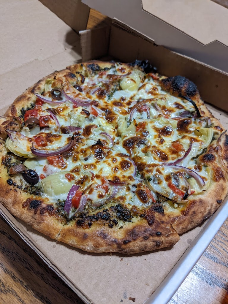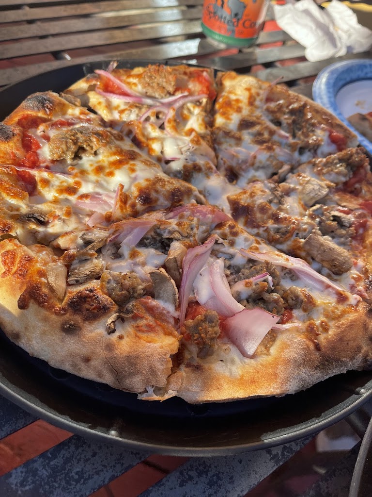 I grew up in Chicago, so I prefer deep-dish pizza and rarely rave about anything but, but these pizzas were very good. I think wood fire oven- baked pizzas are an acquired taste. The margarita pizza reveals its shortcomings. Basilβs flavor doesnβt really survive the wood-fire well. On the other hand, the Jerk chicken pizza was excellent: full of flavor, fresh ingredients, and very satisfying.