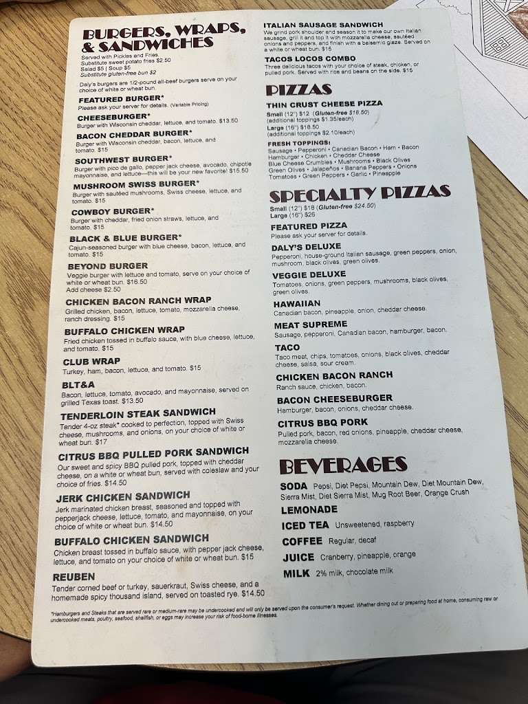 Daly's Bar & Grill serves gourmet bar food including cheeseburgers, nachos, pizza, pasta, wings, fish, and more in Sun Prairie, WI.