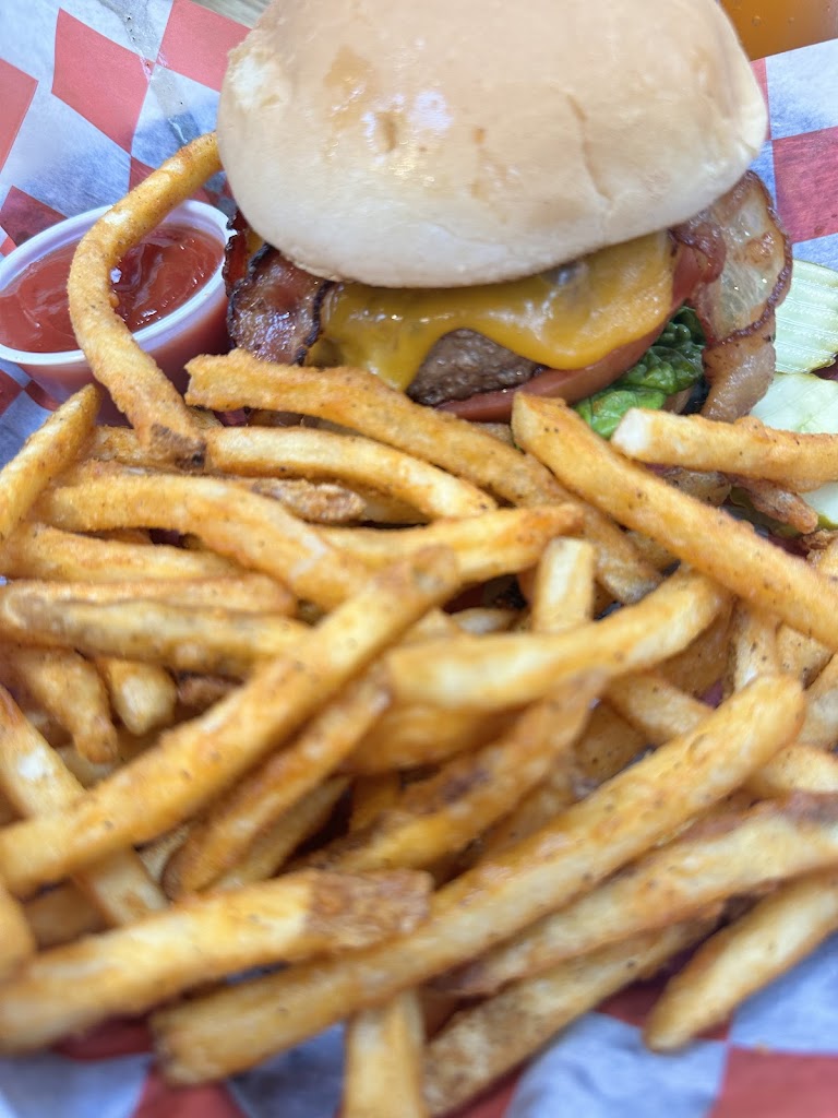 Had the double smash burger and fries. The fatty bacon elevated this burger to great, and the fries were the perfect crispiness you hope for, and get the pickles on the side for a bonus sour treat. Good job flavor per dollar spent, will stop again if I'm in the area.