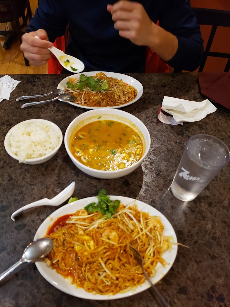 My family and I tried the delicious Thai iced tea, pad Thai, khaopoon, and egg rolls. Dan was so friendly. We will return soon.