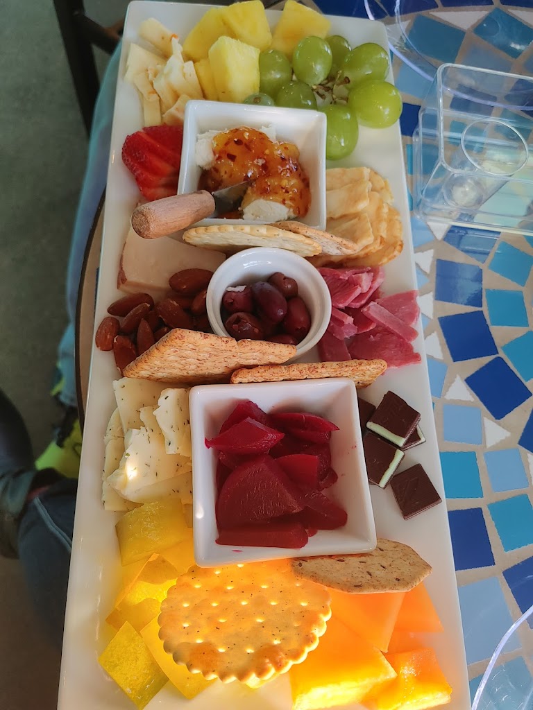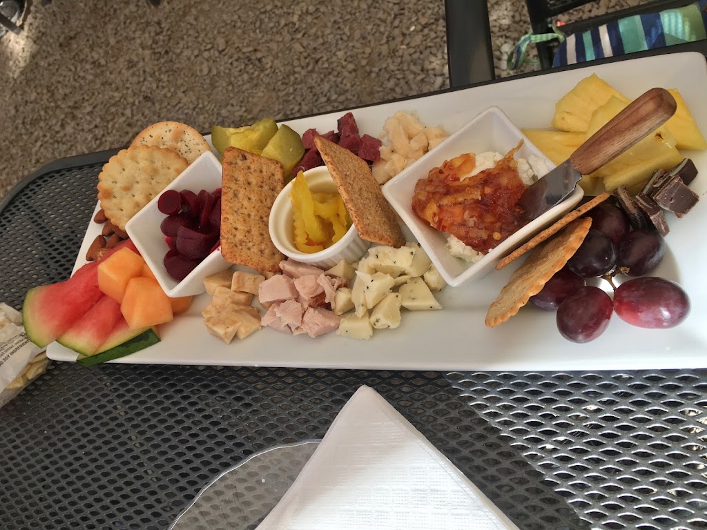 First time there and we were so glad we stopped!!! Each had a wine flight. It was a nice sampler and my favorite was the Grand Raspberry! Num! We also got a cheese and fruit platter. Well, worth the money. Full of cheeses, fruit, nuts, meats, crackers and veggies. Will definitely be back soon!
