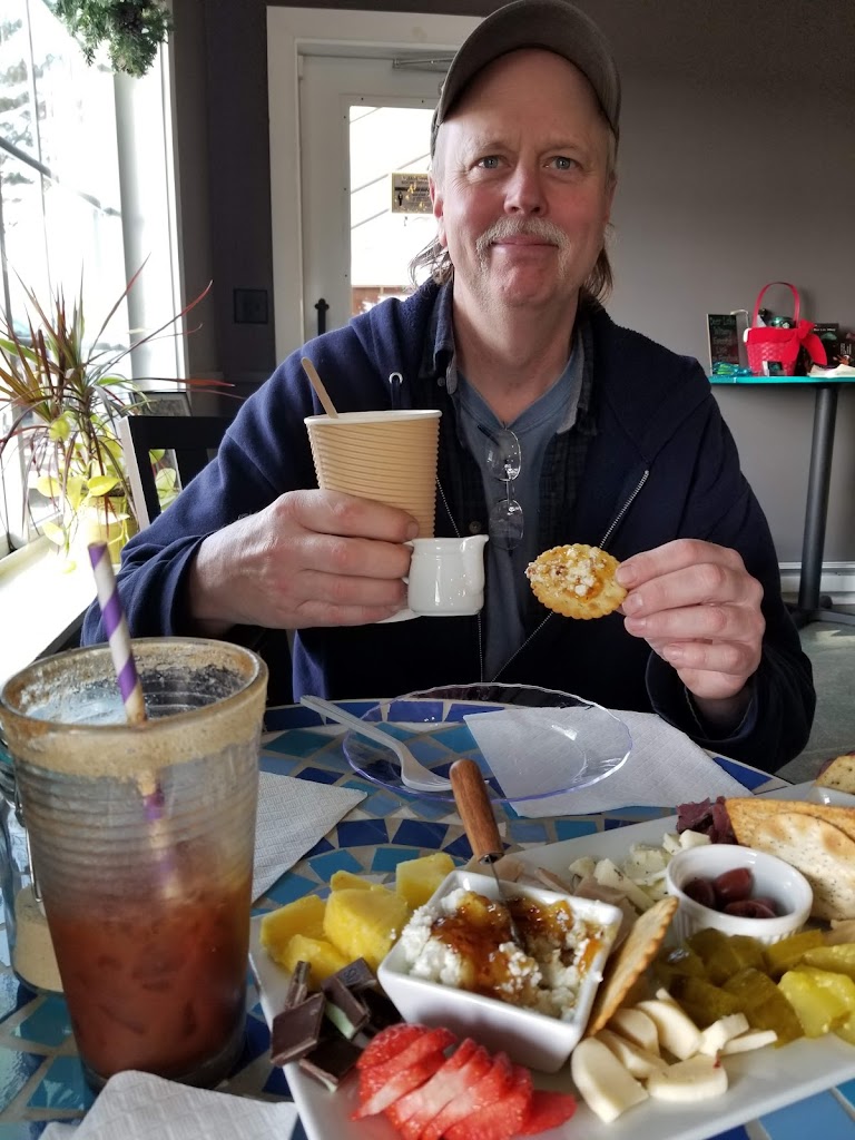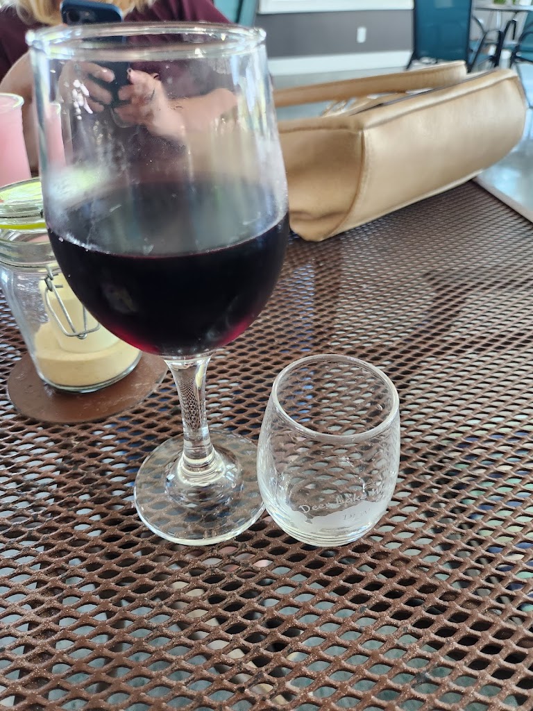 I picked this venue as a halfway meet up/drop off location. I was looking for a coffee shop and found this instead. Nice small selection of wines, adult slushies, and surprisingly, lattes. Purchase by the glass, bottle, or flight sample. Indoor and outdoor seating, outside has live music.They have a small selection of appetizers (GF friendly)