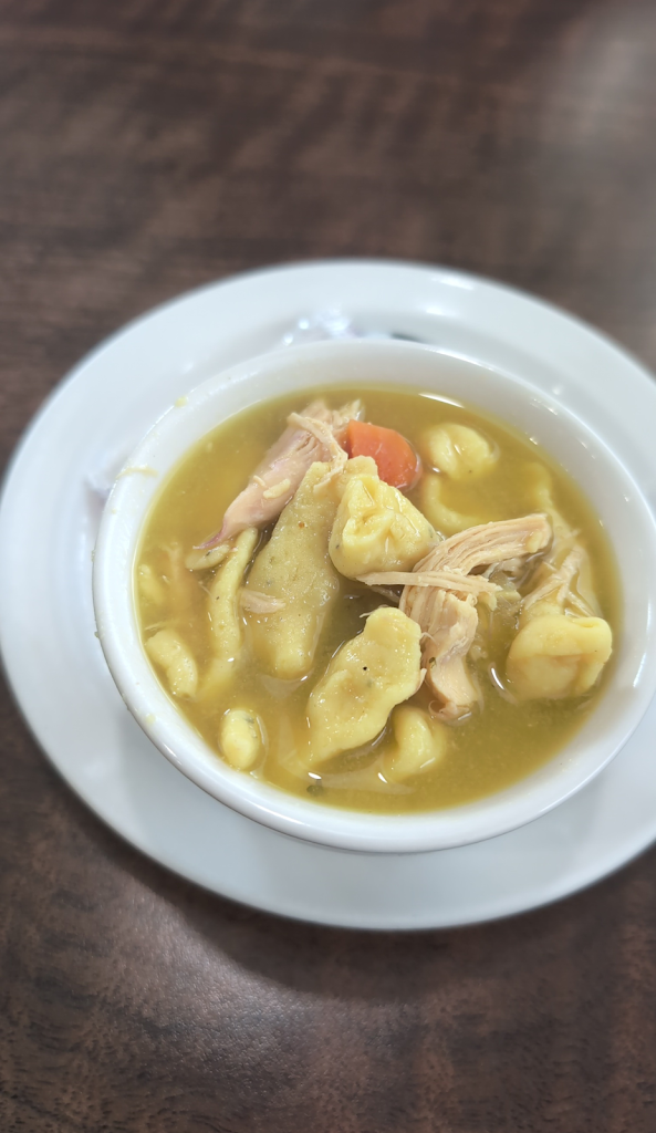 Once a really great restaurant, they have gone downhill drastically. Breakfast may be good but skip lunch or dinner. Their once delicious dumpling soup was now inedible. The broadted chicken half was a joke. The leg and thigh had very little meat, the tiny leg discusting. The tiny white meat was tough and dry. The hot beef sandwich was bad processed deli meat. Saw another guest leave his mostly uneaten as well. Mashed potatoes were ok. We stopped at Kwik Trip to get edible food. So very disappointed we can no longer support what used to be a great place.