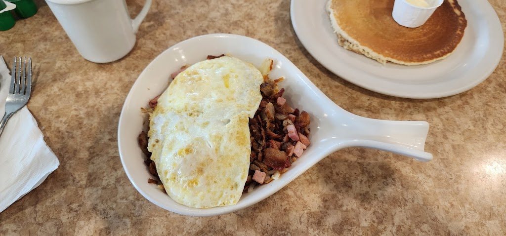We go here regularly and really enjoy the breakfast/brunch menu. The corned beef hash is one of our favorites, offered as part of a "Skillet" or a breakfast combo, as well as a side dish add-on. It is well seasoned (using Pleasonings) and flavorful. The pancakes are light, fluffy and flavorful as well. My favorite however is the "Haystack", which is biscuits and say gravy over a bed of crispy hash browns, and two eggs on top of any style. As a tip, for those wanting to lighten up their order that normally incy hash browns are a side, fruit may be substituted for a small charge. The coffee is pretty good, and is refilled plentifully. Service is always friendly, efficient and fast, even when they are busy.