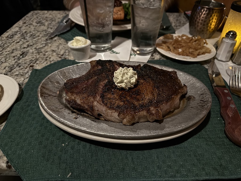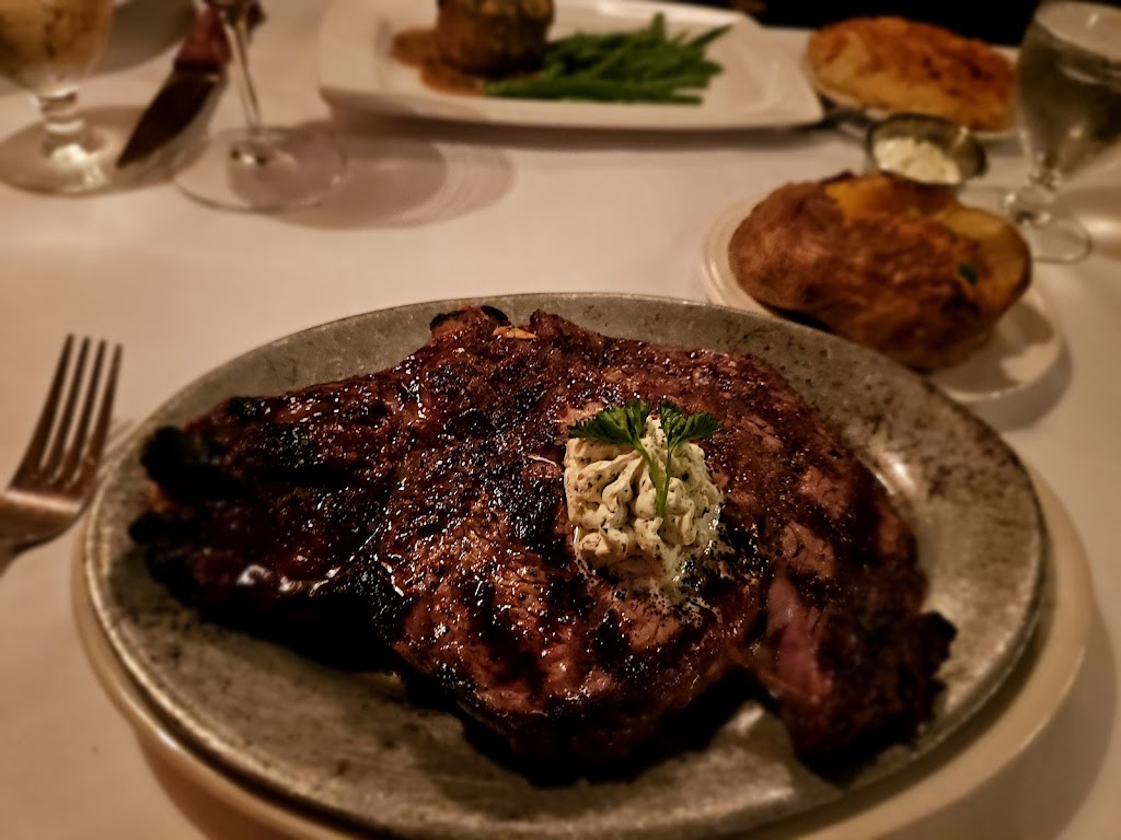 Ordered the bone in ribeye that they charge almost 60 dollars for. The steak came out on a RIPPING hot metal plate. It splattered oil all over the place hitting not only me but the person next to me. By the time it was safe to even try to cut it, the steak was pushing well done (I ordered medium rare). The few bites I tried from the steak were horribly salty with no other seasoning, the "truffle" butter had no extra flavor. The person next to me ordered chicken oscar and the crab that came with it smelled like pond scum and made her sick not even an hour later. We weren't charged for the meals but I'm out one white shirt thanks to the splattering. I've had bad restaurant experiences but being hit with hot oil is a first. I rarely, if ever leave reviews but hopefully this one finds somebody before they make they mistake of spending a big lump of cash on this place.