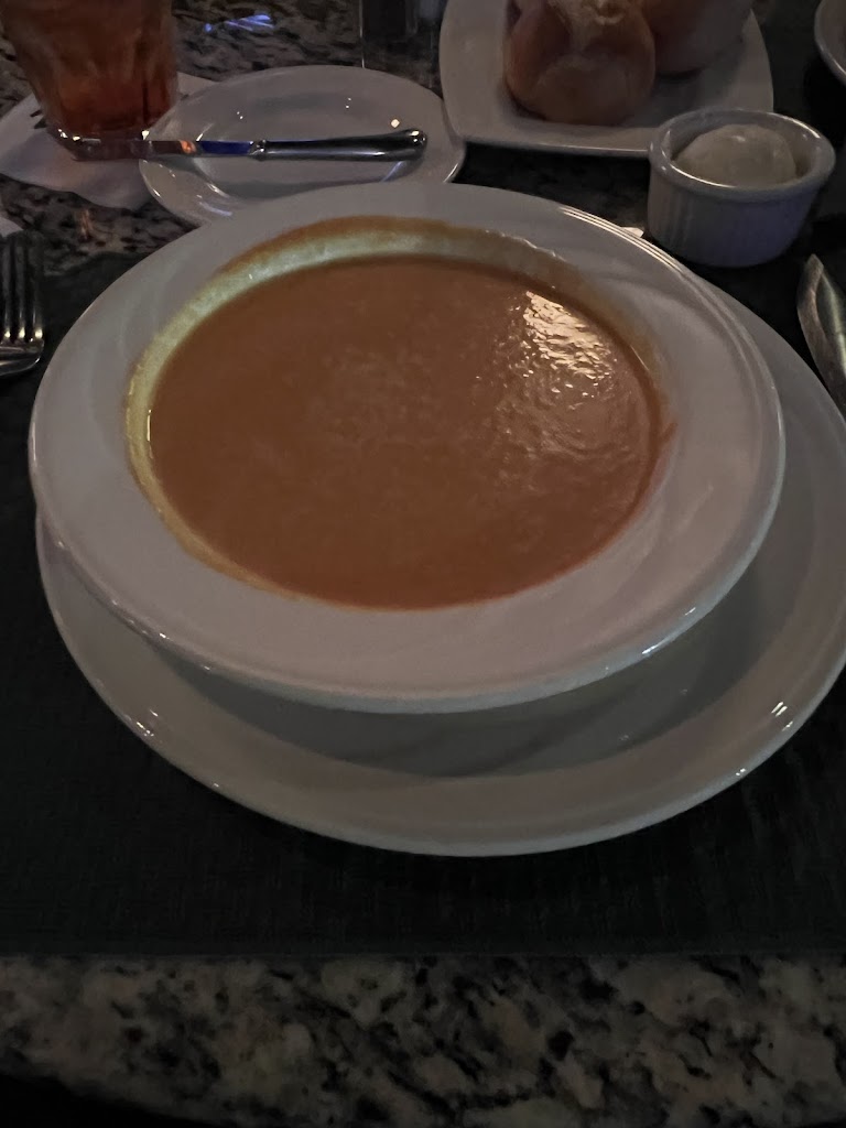 Ordered 3 apps and it's just all bad. Mushroom was eh - not as buttery or cheesy as it said, crabcake was worst than bonfryer and I reviewed it mushy there, and calamari was meh. Steak was undercooked and bland. There tiny bits of seafood in the seafood soup - totally not worth the price. Steak was undercooked. The decorations was very tacky.