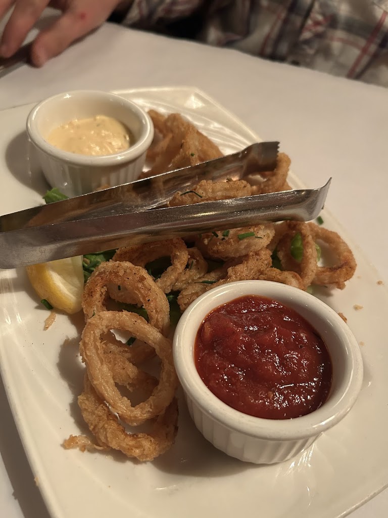 This supper club in Madison’s west side has been in business over 50 years so we had to check it out! The place definitely has a classic supper club feel with lots of small, square dining areas giving visitors lots of privacy which is appreciated. Everything started out great with multiple people attending to us and taking our order. The drinks were ok but the calamari was absolutely amazing! Moving on to the main courses we had the chicken Caesar salad and the featured steak of the evening. The salad was good but the steak was legit RAW when we ordered it medium. After dropping our food, our waiter never came back! Eventually after 20/25 minutes we flagged someone down to get the steak cooked more but it kind of ruined the entire experience. Overall it was ok but we won’t be back 🤷🏼♀️