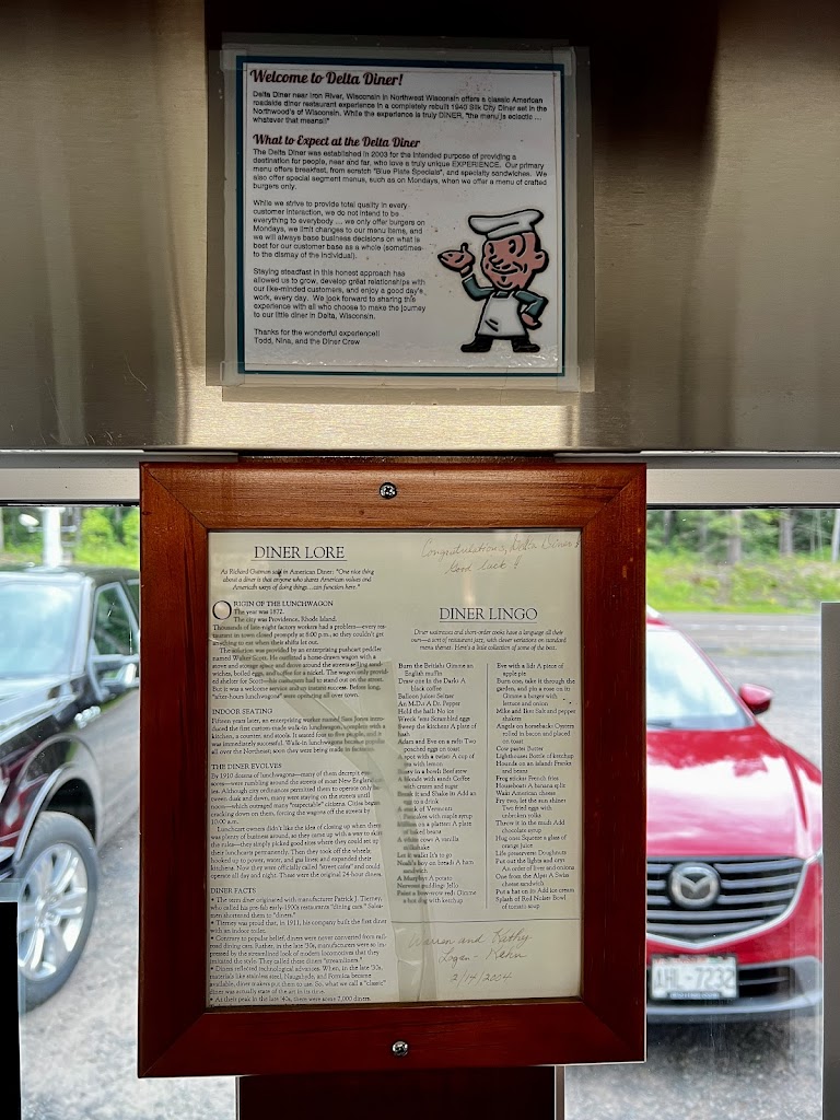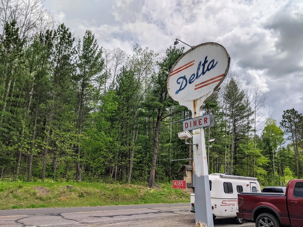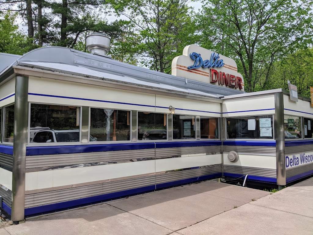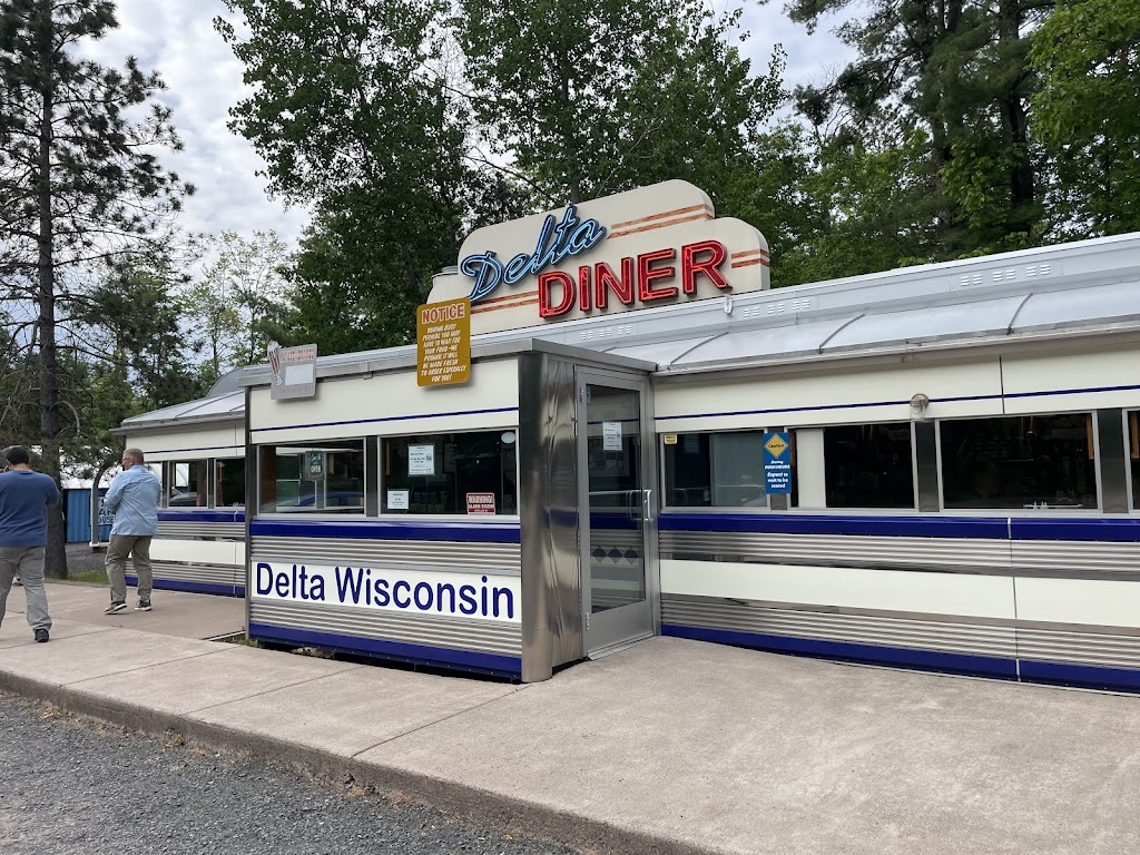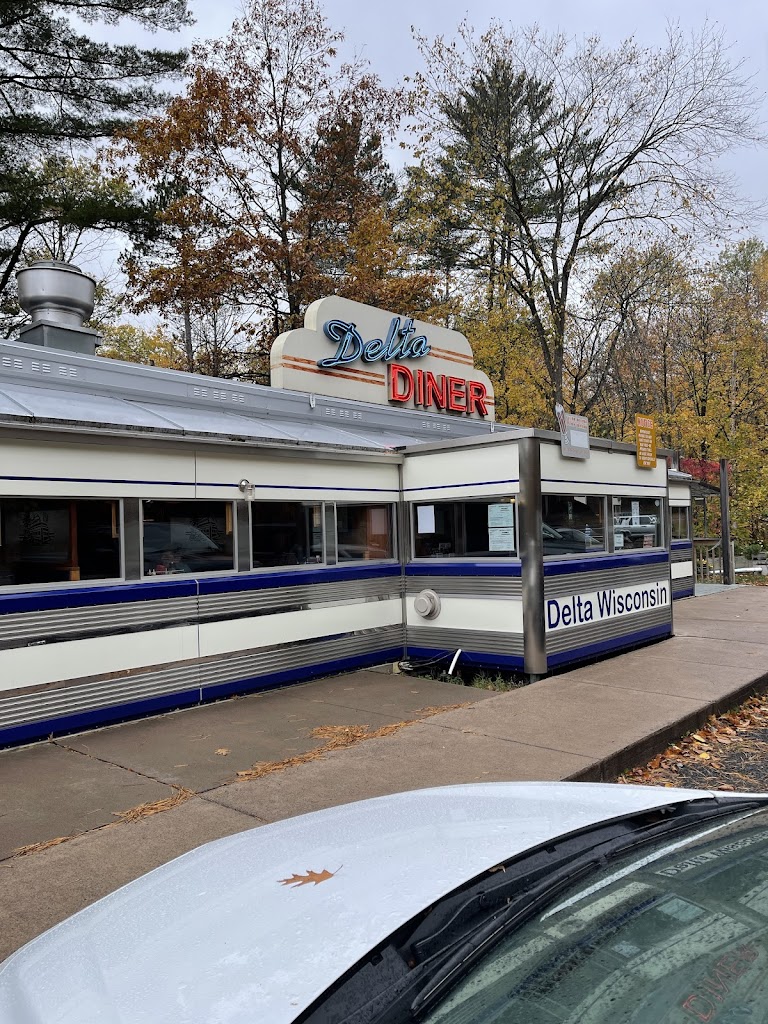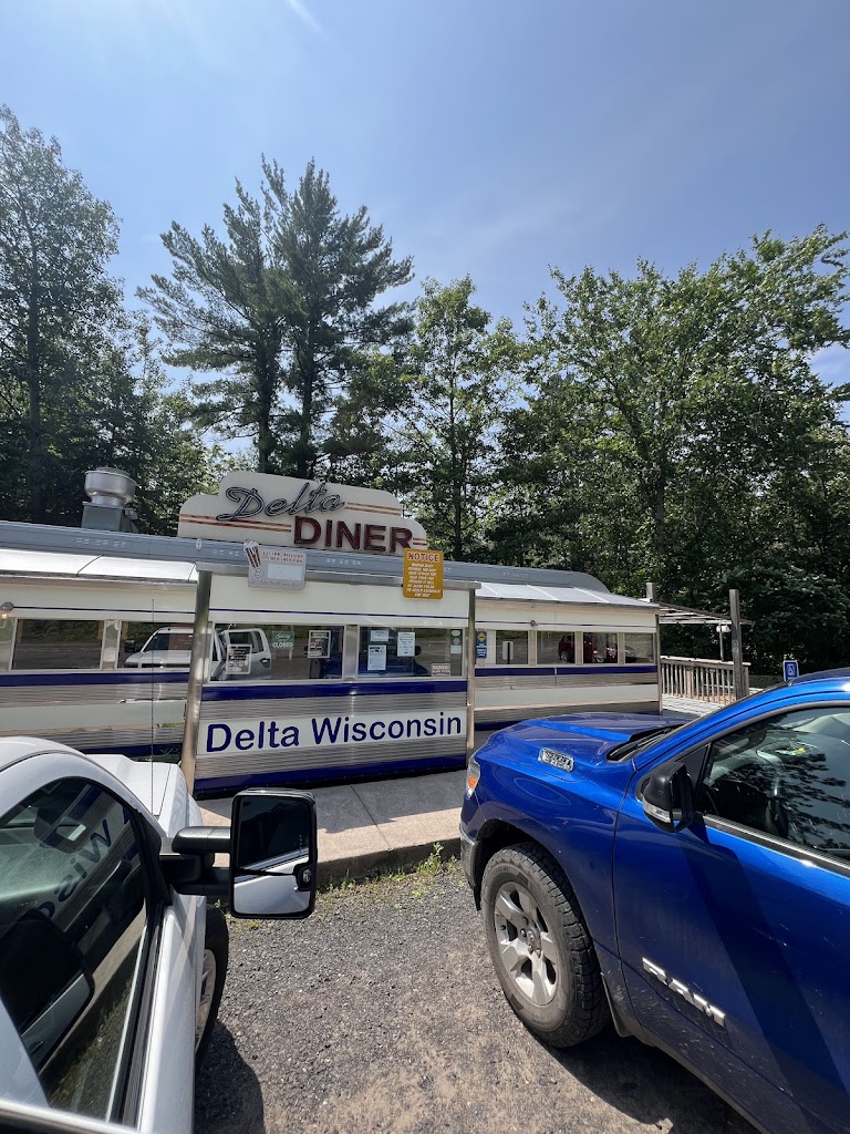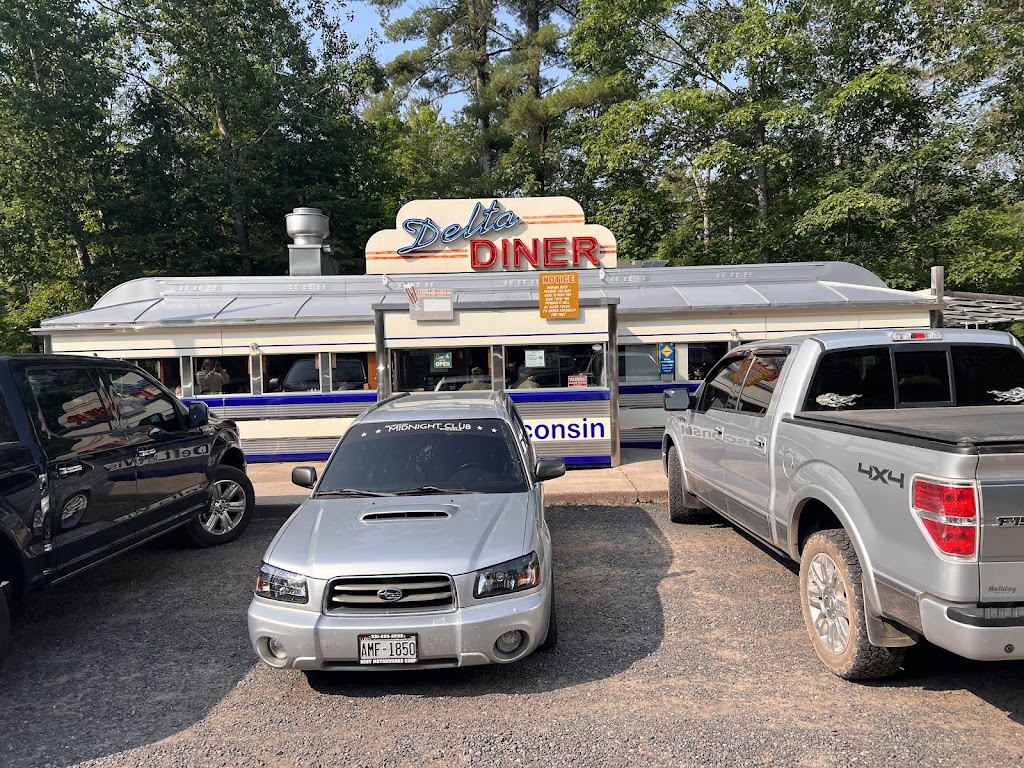 Delta Diner is one of the most unique and enjoyable diner experiences I have encountered. Tucked away in the Northern woods of Wisconsin, the diner rests rather unassuming along the roadway, the only indicator of it's potential the full parking lot with eager customers waiting in their vehicles for their chance to partake of the delicious food inside.