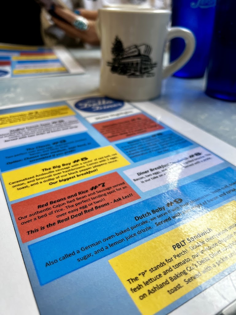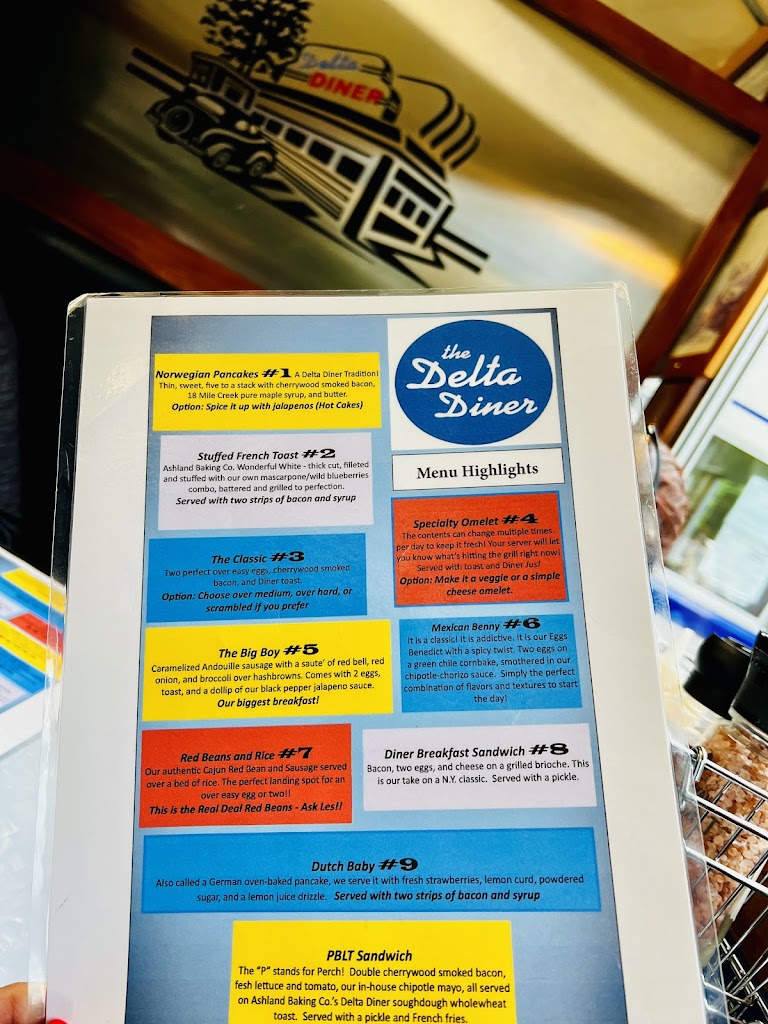 The Delta Diner is a unique place. The menu is explained to you by the wait staff so you get a different experience and can ask questions. There isn’t tipping because they pay their staff a living wage. Yes the menu prices definitely reflect that but the food is absolutely delicious and worth the trip to find it. We would love to eat our way through the menu!