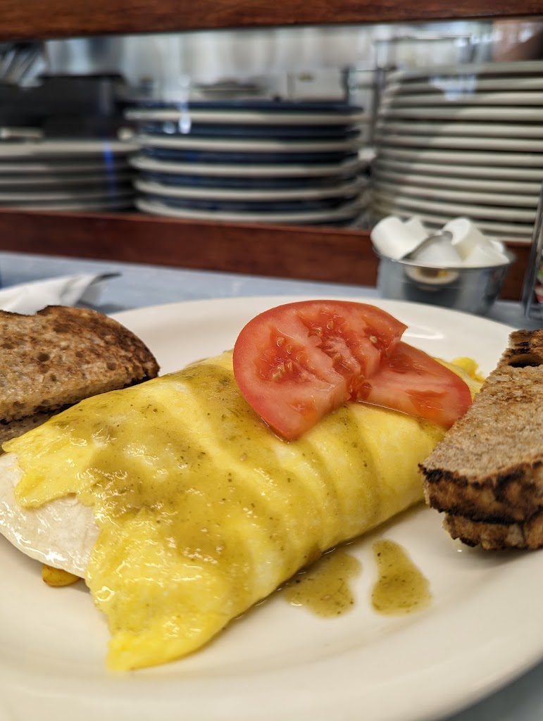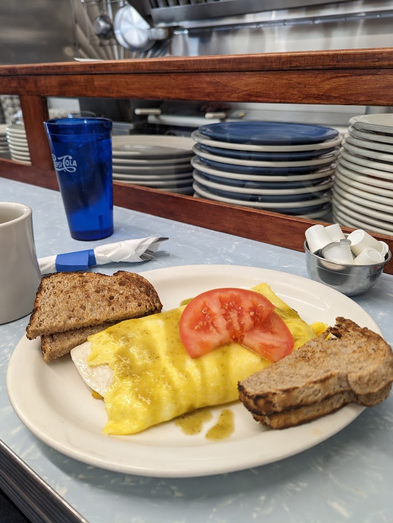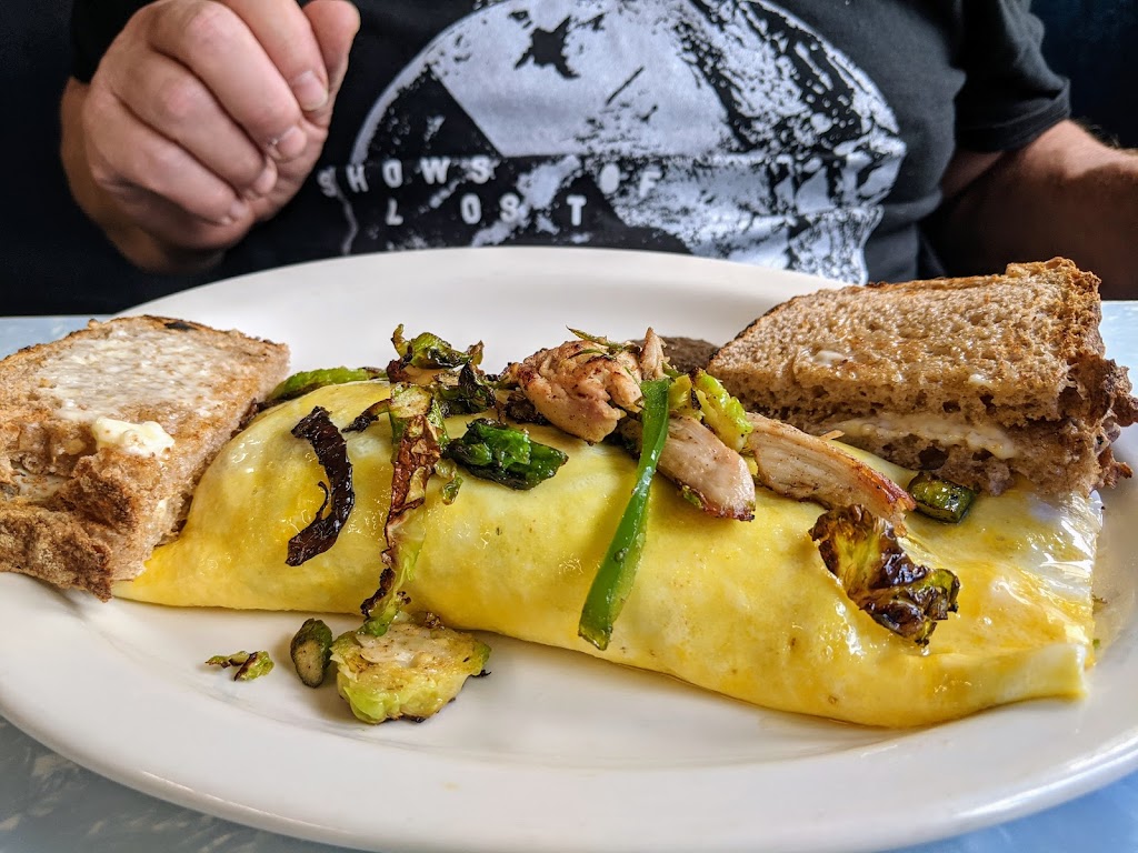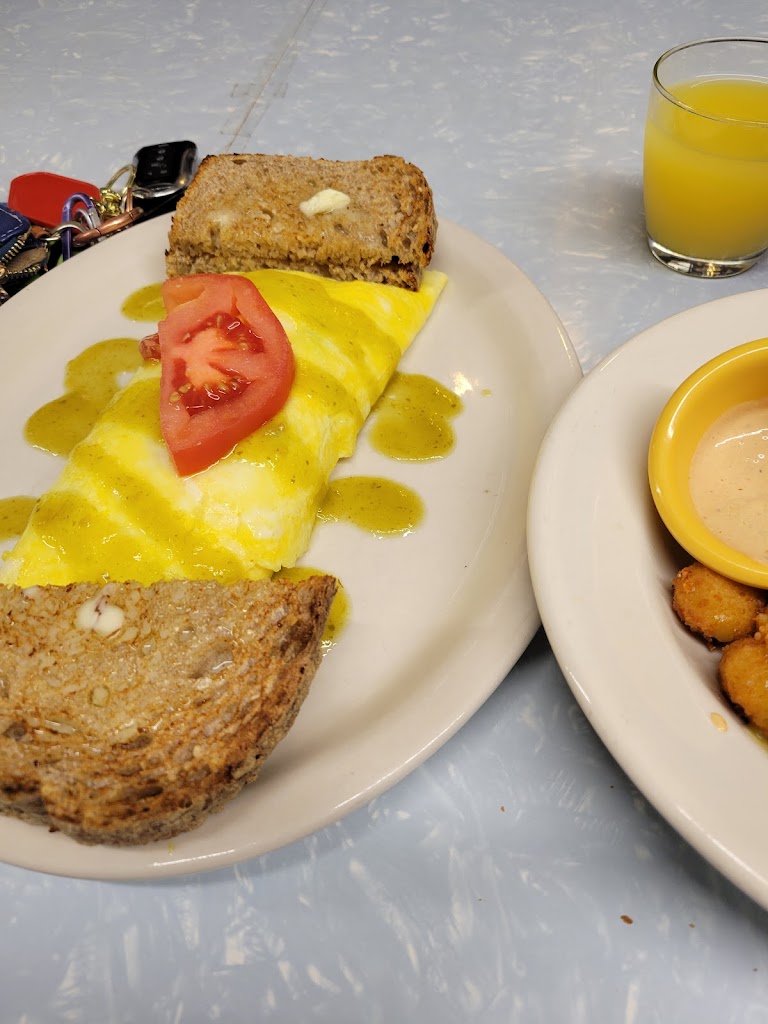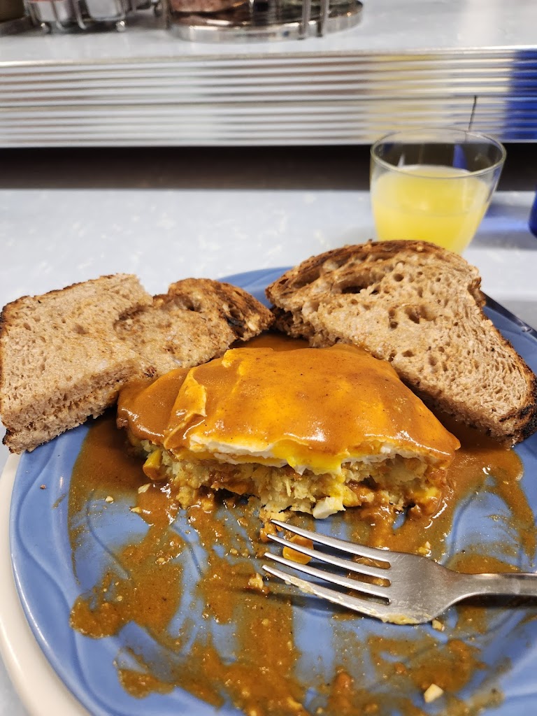 Delta was recommended to me by our Airbnb host and it did not disappoint. Well worth the out of the way trip. The atmosphere is super cool, it has an old east coast diner feel which was very nostalgic. Staff was super friendly and attentive, food was delicious and interesting. I had a cheeseburger omelette which was a special that day. Tried one of their famous pancakes, very interesting and really good. Can’t recommend highly enough.