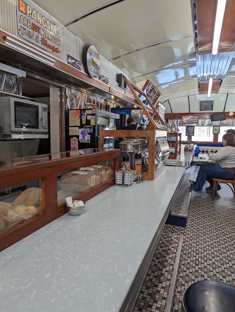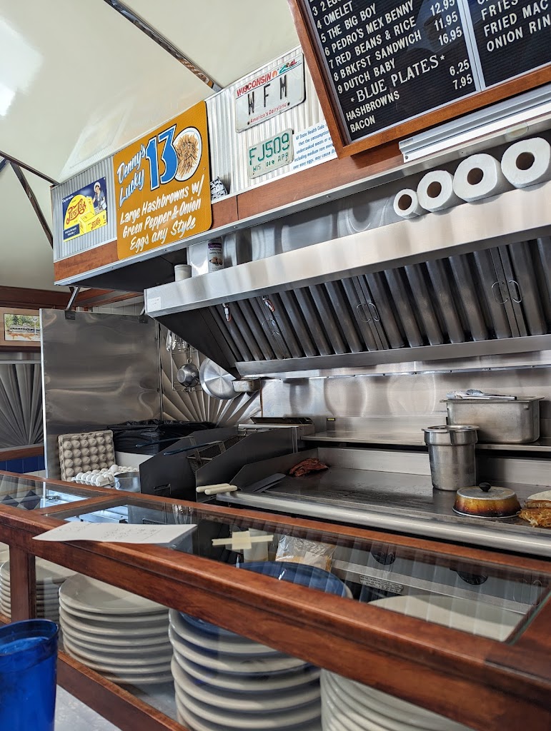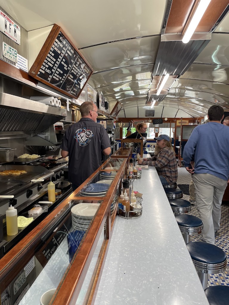 This is a old school dinner(made to look like a train car) atmosphere in the middle of the north woods of Wisconsin. Get there early and plan to wait. We waited an hour and it was not long after that I heard much longer times. There is a coffee shop right there too.