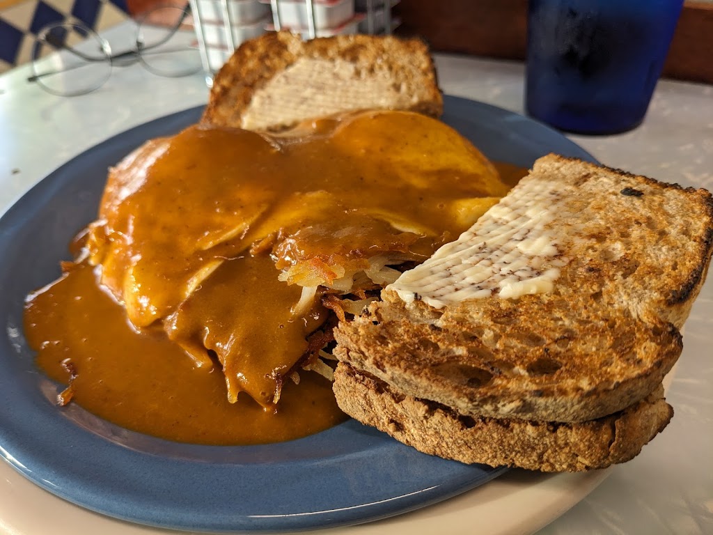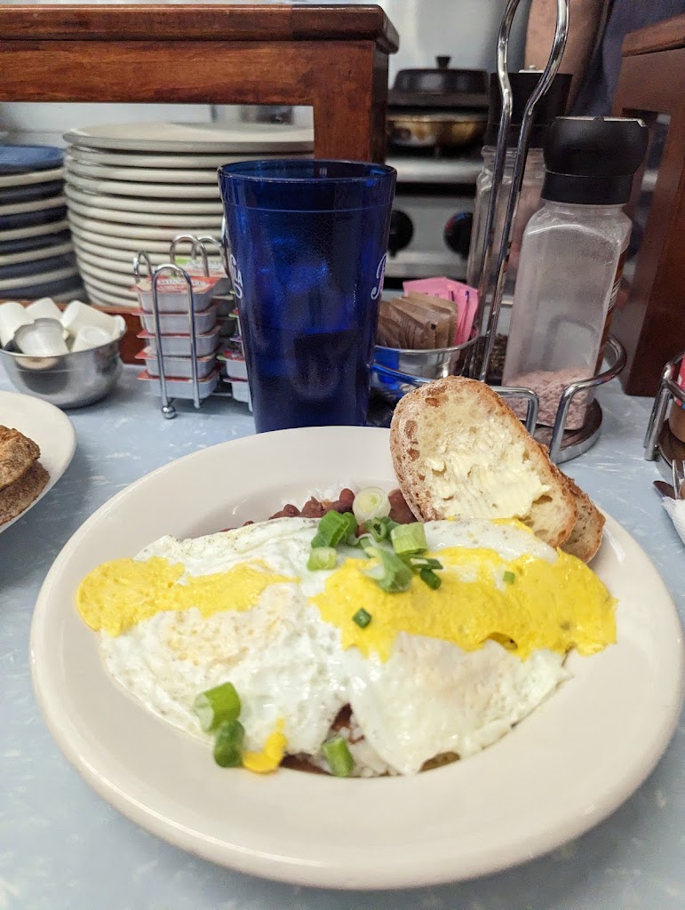 The signature Norwegian pancakes are so good. Some of the best pancakes I've ever had. Good spot if you're looking for good food in a small, diner setting. Expect a long wait if you arrive during peak times. (If you do have a wait, I recommend grabbing a caffeinated beverage from the little ice cream/cafe next door). Service was nice and coffee was good. Thanks for breakfast, Delta Diner!