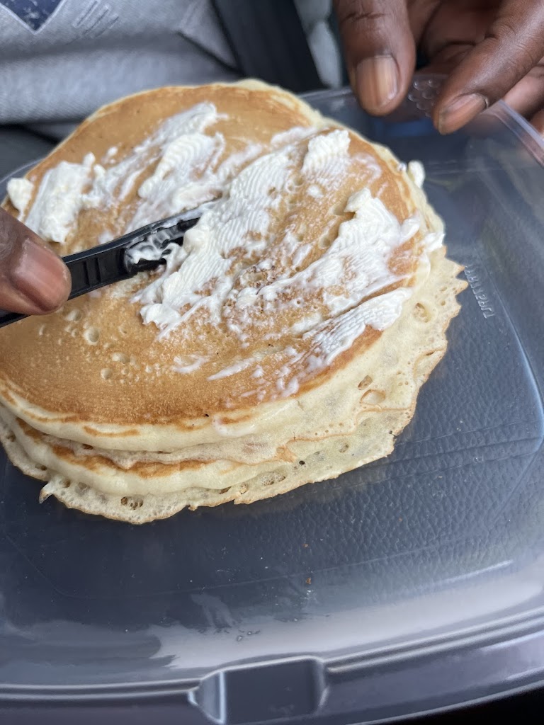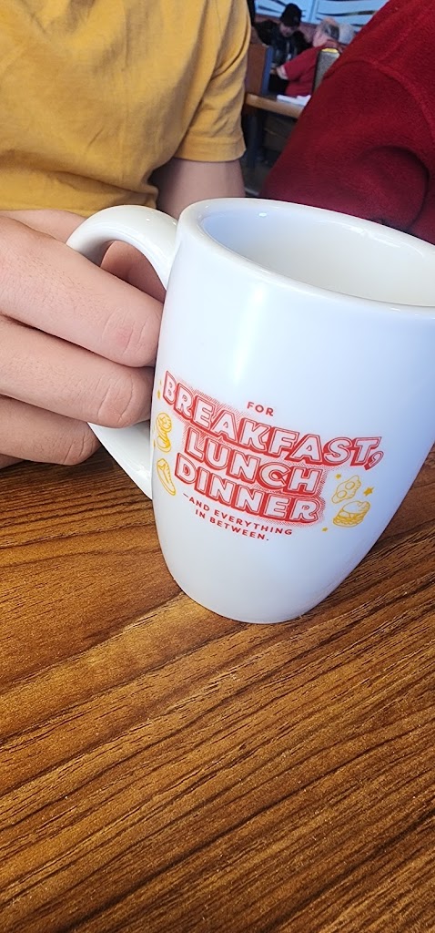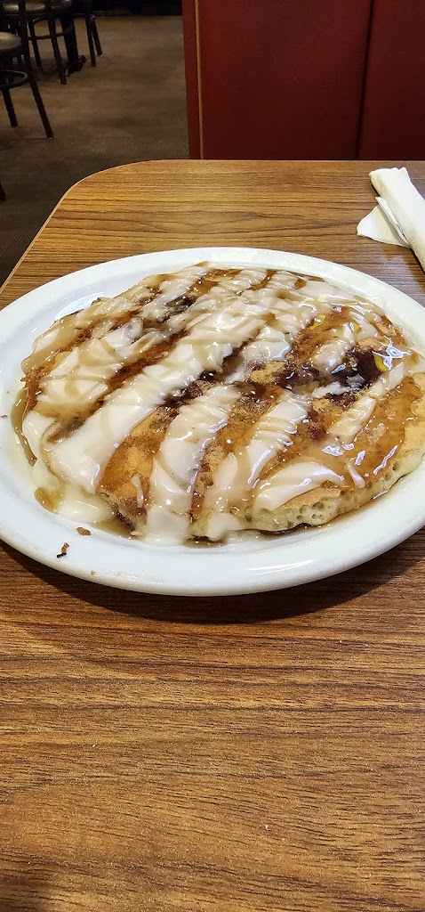 Went for late night eats around 8:30pm and had the best server EVER!! Her name is Caroline en and she was super fun but also very quick and efficient in getting our "breakfasts" out to us. Make sure you request her next time you're there for the afternoon/evening shift...I decided to upgrade my buttermilk pancakes for the Pumpkin ones for only $0.59 and I just wanna say, BEST Pumpkin pancakes I've literally ever had!!! Very flavorful but moist melt-in-your mouth deliciousness!! The 2 pancakes were so big they were almost over the sides of the dinner sized plate 😁 My scrambled eggs were super tasty and cooked to perfection, not at all dry/rubbery or wet/runny, the bacon was very crunchy and delicious and the sausage links cooked just right with just a little spicy kick to them. Bottom line: 2 scrumptious breakfast platters and drinks for under $18 with tax We will most definitely be back!!!!!! 😋🤤