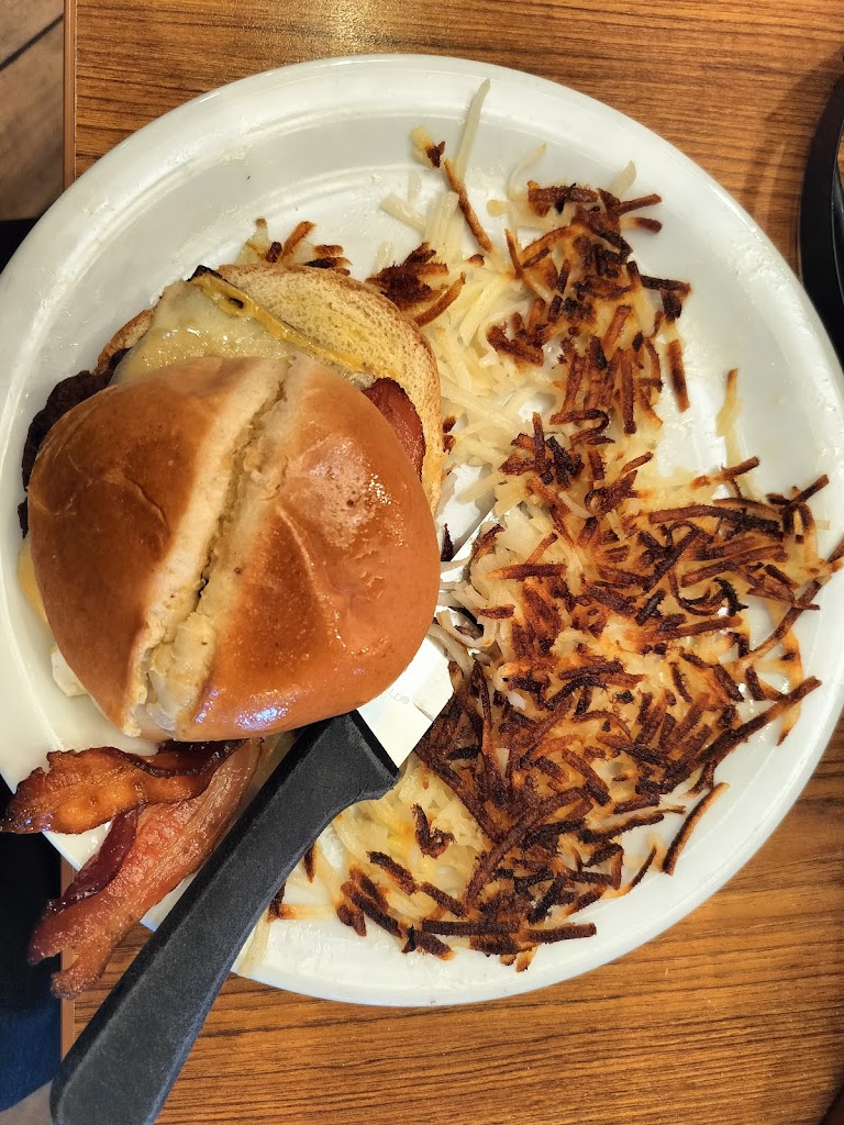 Waitress Jackie really knows her clientele and serves them customized menu offerings. Prices have increased over the pandemic, as with most places. Beneficial to use AARP discounts on the final check. Enjoyed the breakfast bundle at midday, coffee was bottomless, Santa Fe skillet was very tasty.