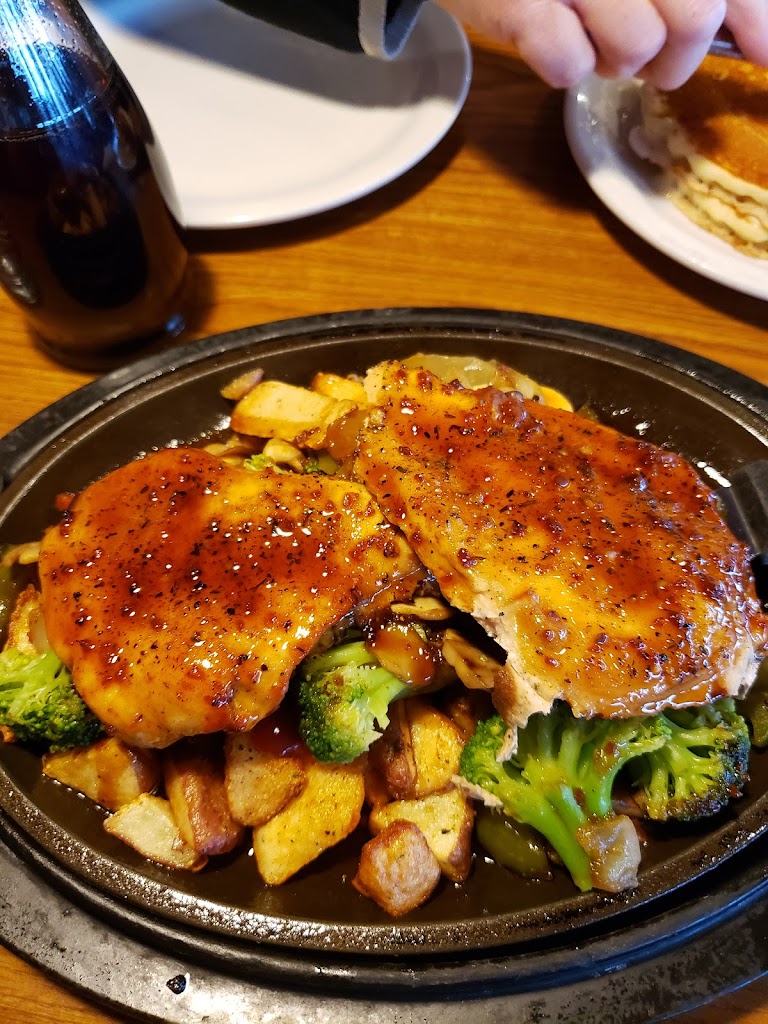 Denny's is a good place for stick on the bones food. Not too expensive. Not fancy. Just good food.