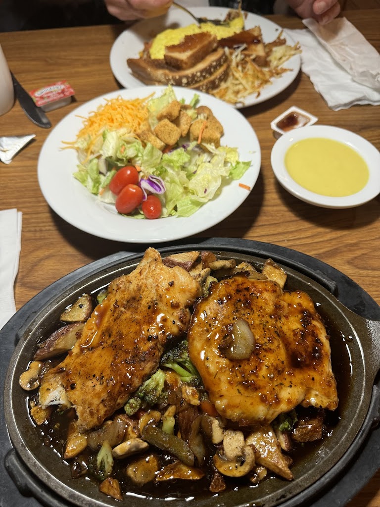 The food was horrid. All I could taste was iron from the skillet which only hints to it being rusty at some point.
