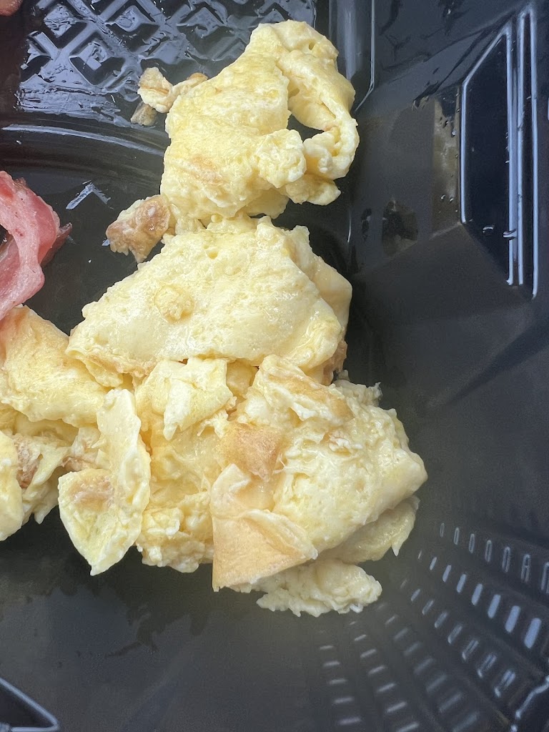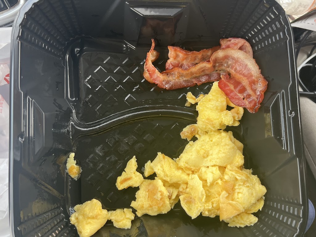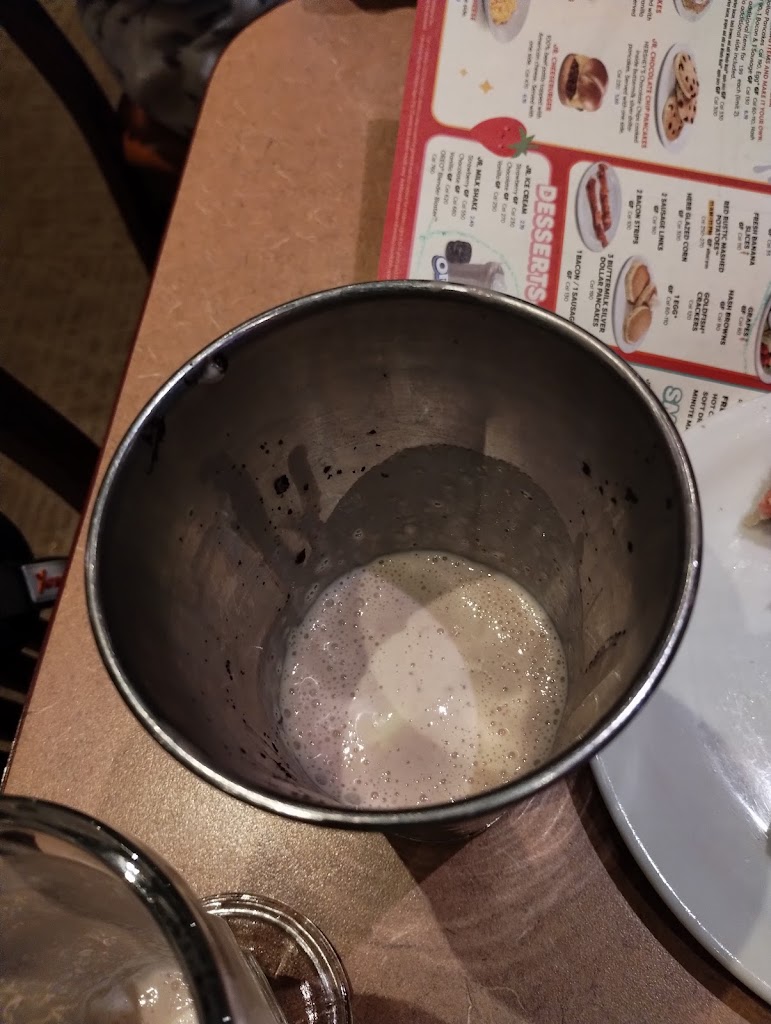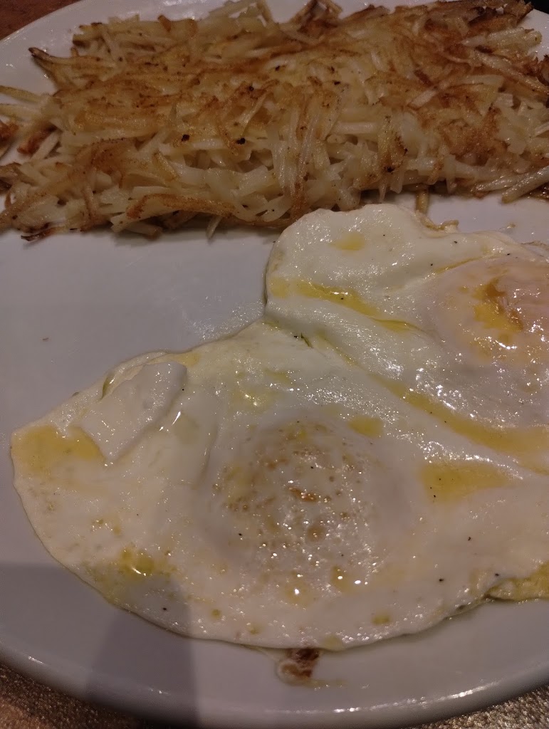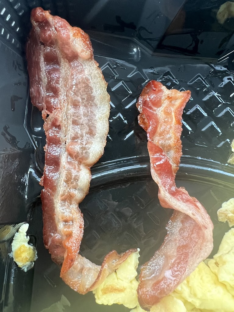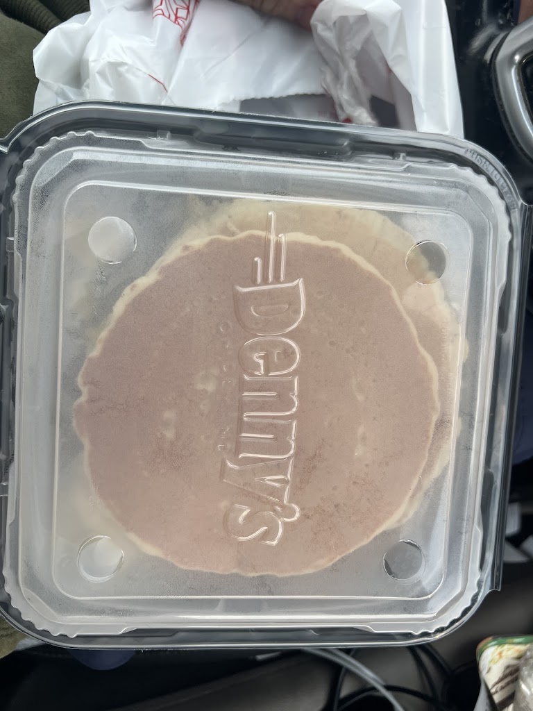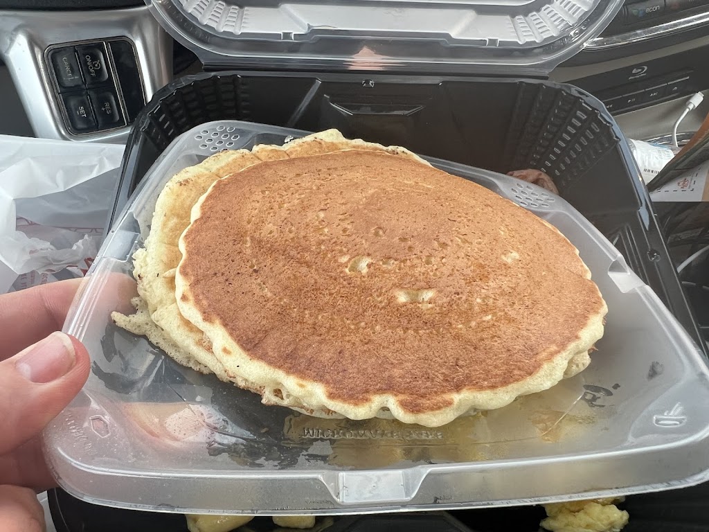 Ordered breakfast to go. Staff very polite and the food was ready quickly. I had pancakes, eggs, and bacon if I had to write them pancakes five out of five, eggs, four out of five it was just a small portion and the bacon, two out of five mostly disappointed on that there was a really neat to go bagtwo syrups two butters napkins, but no wet wipes. I think that would be a good addition since youโre dealing with syrup, complaint floors were dirty with crumbs on the bench is to sit on and the Bacon just was heated up lukewarm little fatty.