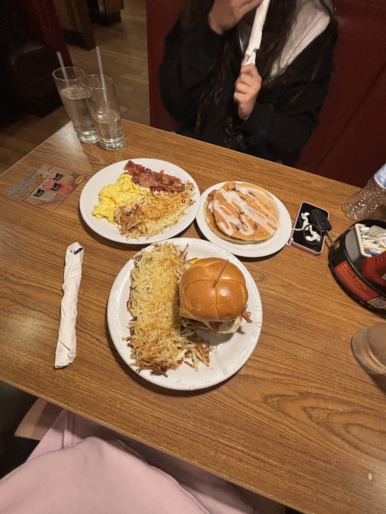 Late night dennys hits. Our server, Anthony, did such a good job accommodating our large group with multiple orders. Awesome experience! I ate all my food lol
