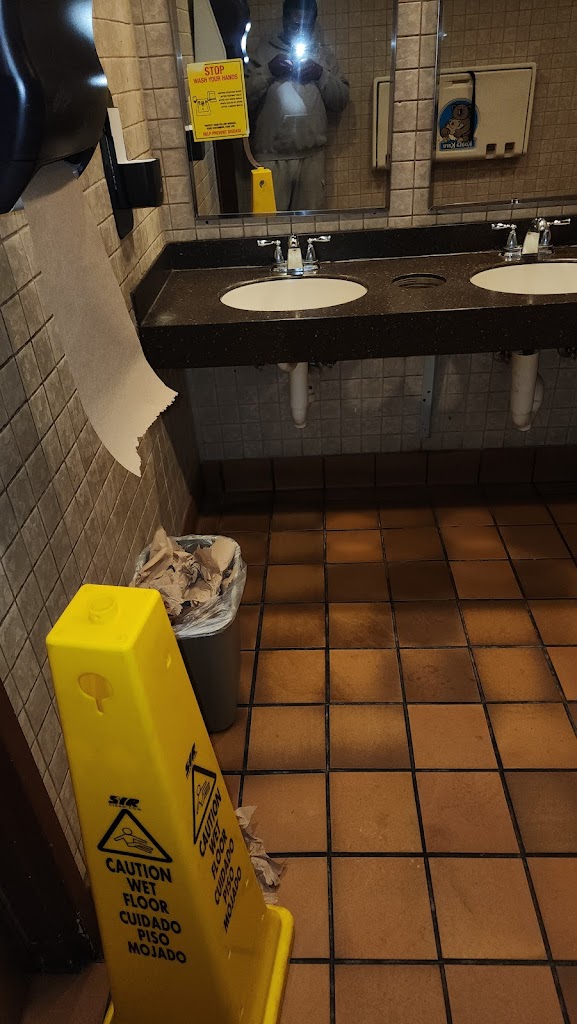The Men's Room.....Third shift Men's room duty was totally neglected. I notified one of the men staff/crew members. I told him that the bathroom was extremely out of order. He agreed with me. But did nothing about it. I had to walk in standing water, use the bathroom on top of a stopped up urinal. It was beyond gross. It spoiled my appetite. I stuck around until shift change, to see if third shift would be courteous to the 1st shift. NOPE!! Third shift Men's room duty got passed along to 1st shift. That's cold blooded. No teamwork at all. I'm not going back here until they can find people that are team oriented. Now, this reflects on whomever was responsible for that Men's restroom. Unfortunately, Dennys lost this customer for a long while.