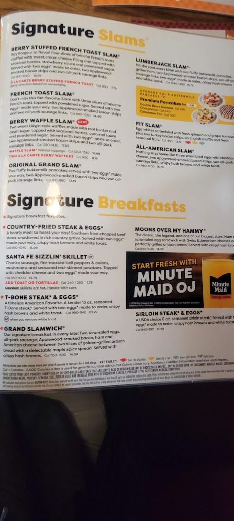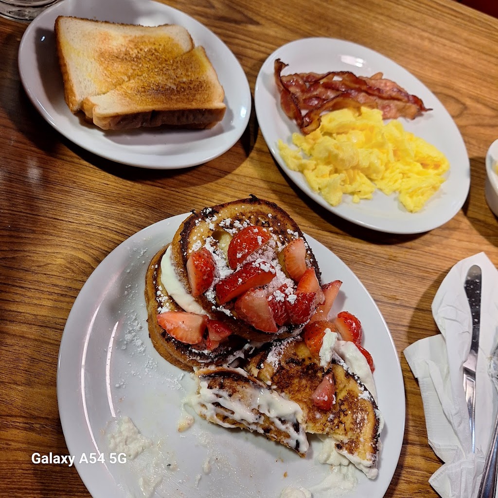 The Grand Slamwhich is a must on every visit, today was exceptionally delicious. Son had the cinnamon roll pancakes, perfect, and my husband had a delicious omelet. Staff was great, our waitress was training another waitress and both did great.