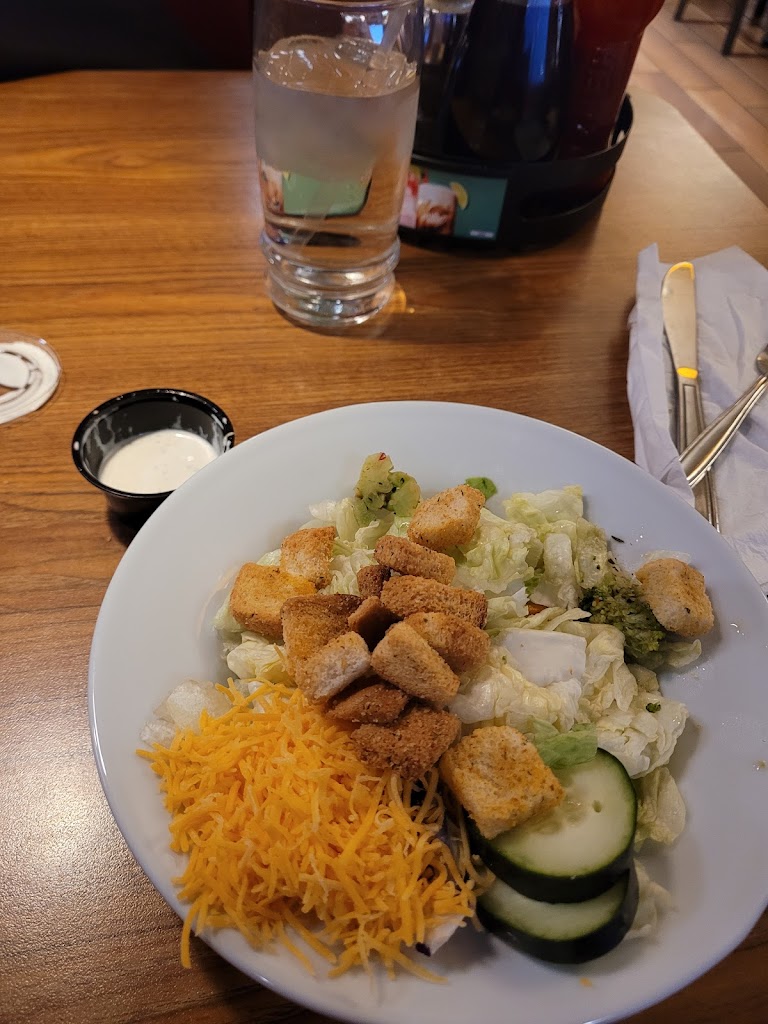 They are probably running under staff. I order a T-bone steak and side salad and the steak came first, the side salad 10 minutes later without the dressing and right after I finished everything the dressing came up; too late. Oh well, food was fine and the service was not there, but what can I said, the server was a host, bussing tables, running food and taking orders.