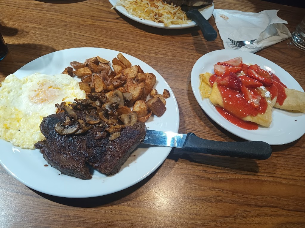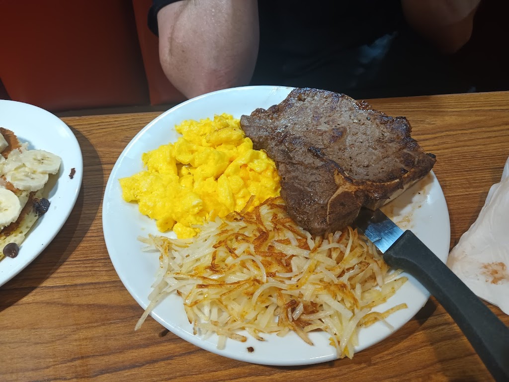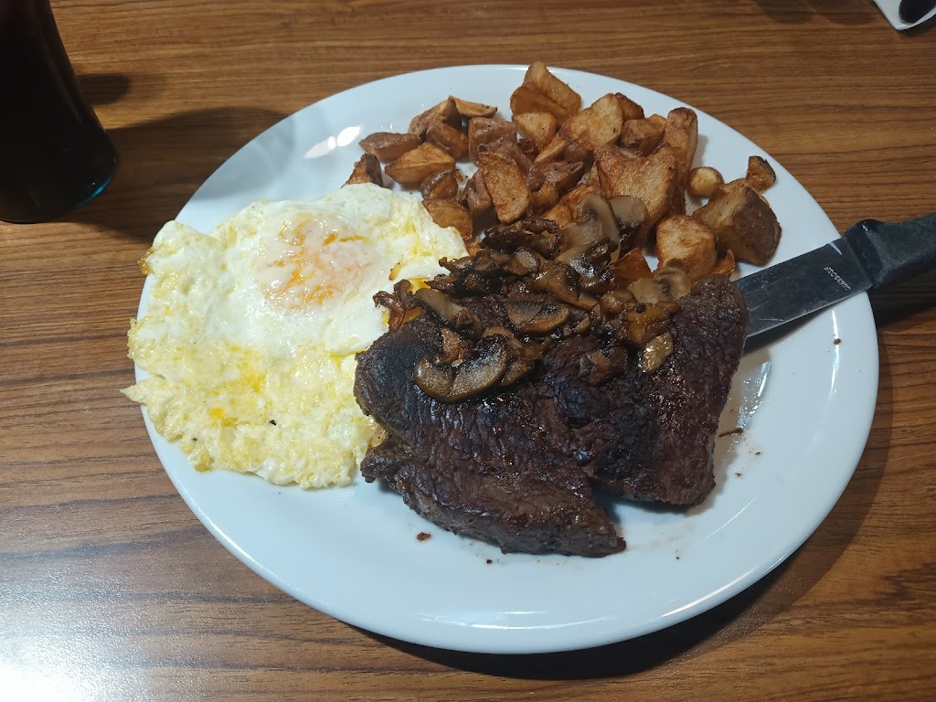 My server was wonderful. I had a breakfast sirloin meal and it was tender and delicious. The restaurant was clean. I travel a lot and like to leave reviews as notes to myself where to stay for the night as well as find good breakfast nearby. I'll be coming back for the sirloin!