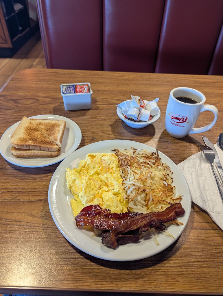 Stopped at Dennys before my husband caught a โ๏ธ flight. Service was excellent, food is always so good.๐ I recommend the country fried steak, and the double cheese burger and fries with avocado and bacon.