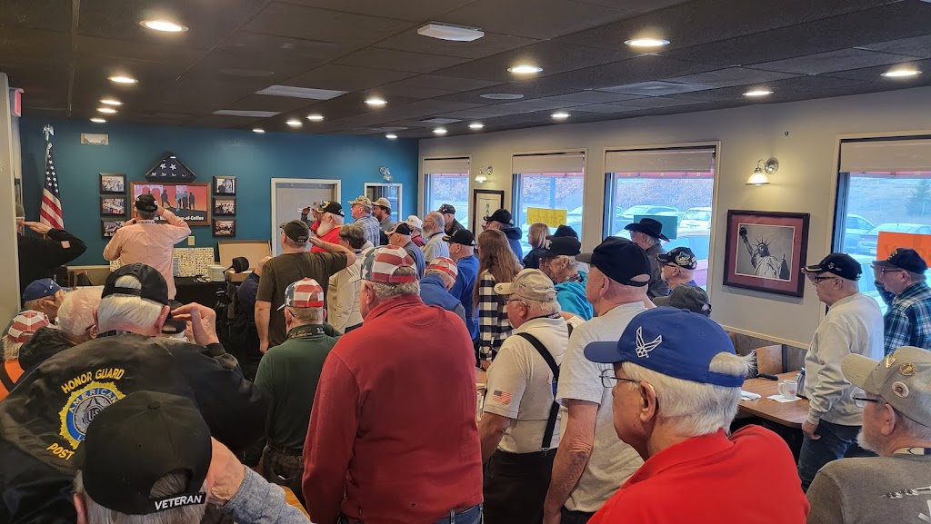 We have our Veterans (weekly) Cup of Coffee -VCC- here on Wednesday mornings. All branches of service, no rank, no dues. Denny's is very accommodating to our large group.