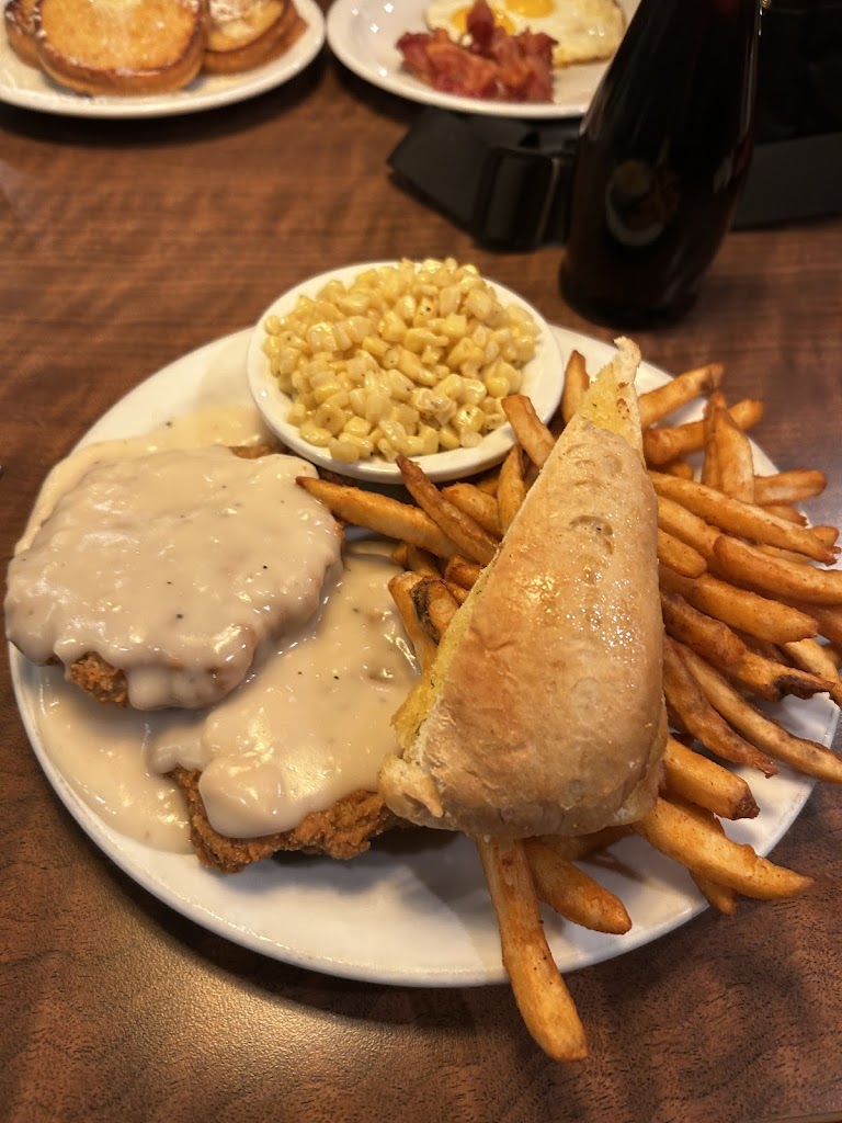We got a mozzarella stick appetizer (SO GOOD) (THE CHEESE PULL— SO GOOD) and then I got country fried steak, one of my go-to’s at places. For one cook, the food was absolutely amazing, like really amazing & didn’t look like it was rushed to be put together.