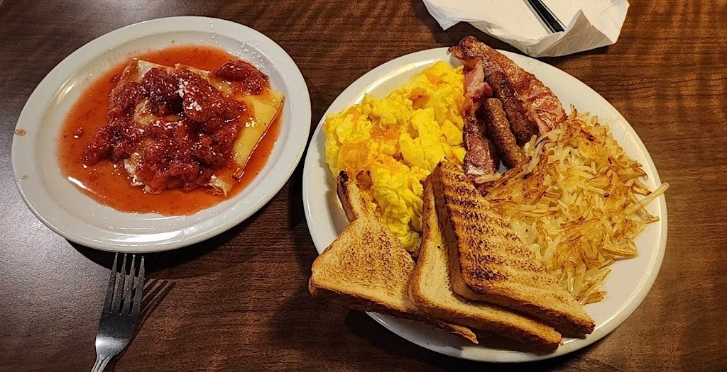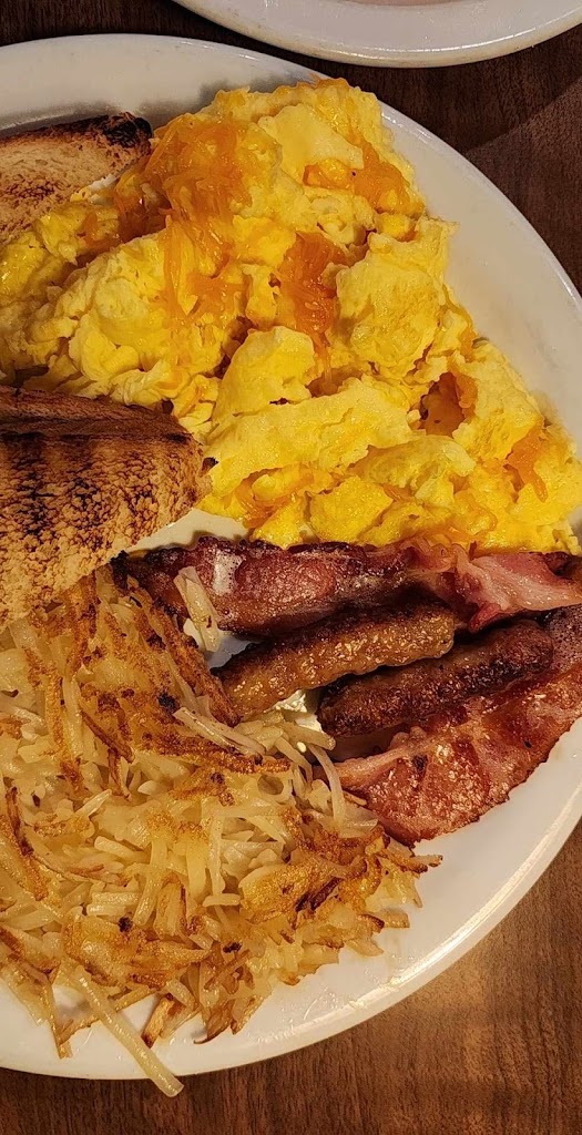 The waiters are very friendly and are always checking if you need more to drink or if the food is good. They serve breakfast lunch and dinner but you can get any of them at any time of the day. The pancakes and steaks are really good. I would recommend this place for a family breakfast or dinner or even just you and a friend.