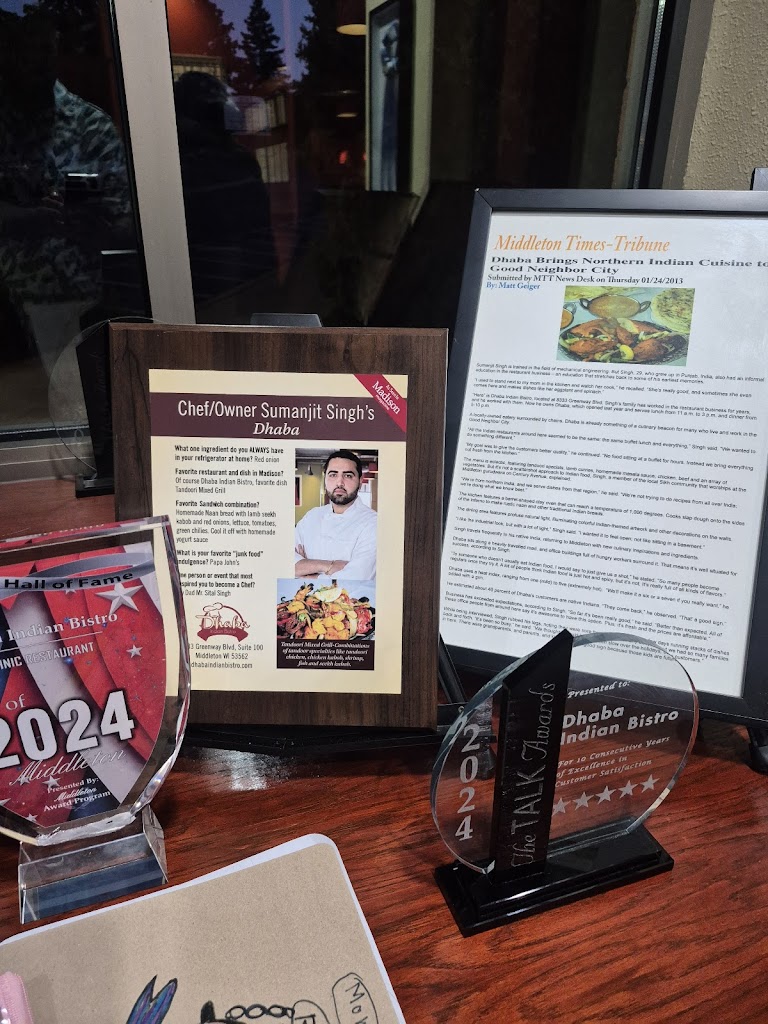 We love this place! Recently have been on an Indian kick and have tried a handful of places around Madison. Out of Amber, Swad and Swagat, but Dhaba is my favorite place! Food is consistently great! Borderline addicting LOL. Service is always prompt, polite and friendly! Atmosphere is clean and welcoming! We go quite a bit so I’m sure they recognize us but always welcome us! We love coming here and will continue. We live on the far east side of Madison so for us to drive to Middleton, it has to be great! Dhaba hits all the marks!