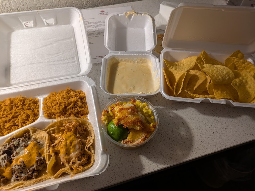 Old cilantro, runny soggy tacos. Street corn is meh, it’s corn! Lot of liquid in the corn. Definitely get American style tacos, the Mexican style is bad. French fries soggy, no crispy. Cheese sauce tastes like the kind from state fair? This gave my sister depression.