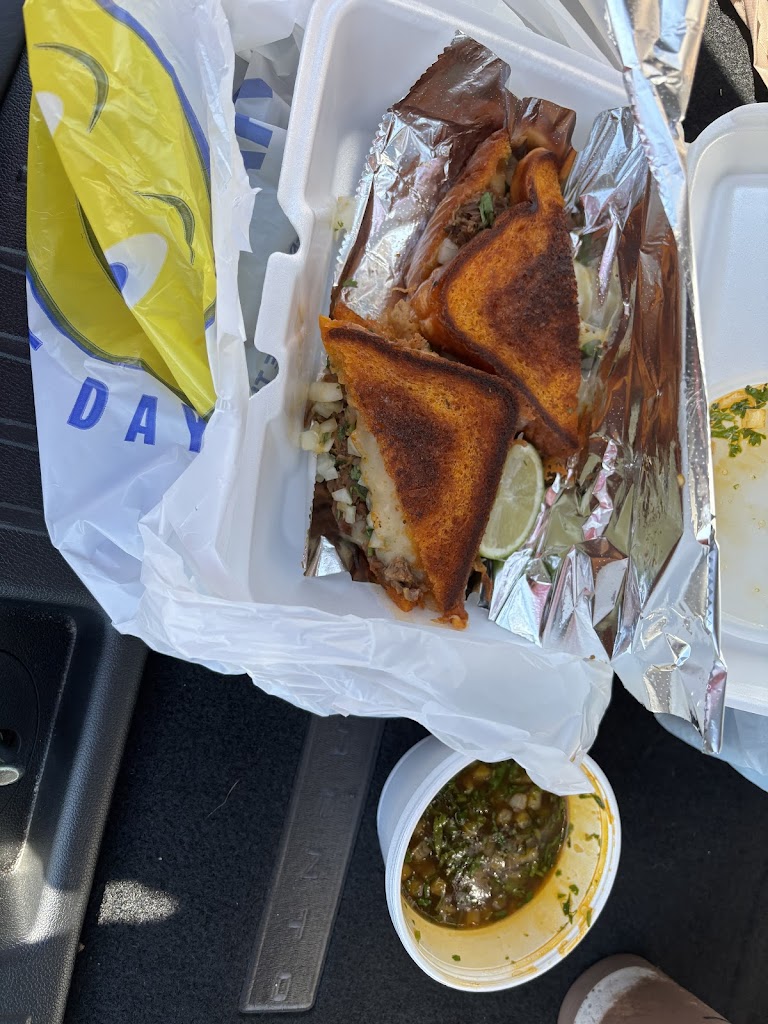 My husband and I went to the restaurant in the Fox River Mall and who I believe was the manager gave us a free meal that they were going to put on the menu next month and told us to try it and give them a review, so here we are and it was AMAZING! I’m not sure what it will be called but it was a delicious grilled sandwich with cheese, onion, cilantro, and birria, they gave us a bowl of birria soup to dip it in and all together was absolutely delicious. They were amazing and made us a Togo order of it because we had loved it so much! Definitely recommend this place and the food!