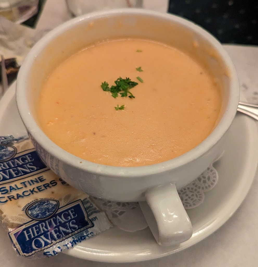 The food was very good, and it should be at those prices. However, the experience was ruined when the bill came. My steak was $75. I never, ever, would have ordered such a high priced meal. The problem began when the waitress ran through the nightly specials, one after the other, then at the end said “for $40”. This led me to believe that ALL the specials were that price. She also snuck in a $2.00 up charge for the French onion soup without informing me. We tipped her fairly, but I felt preyed upon and scammed. Never going back there!!!