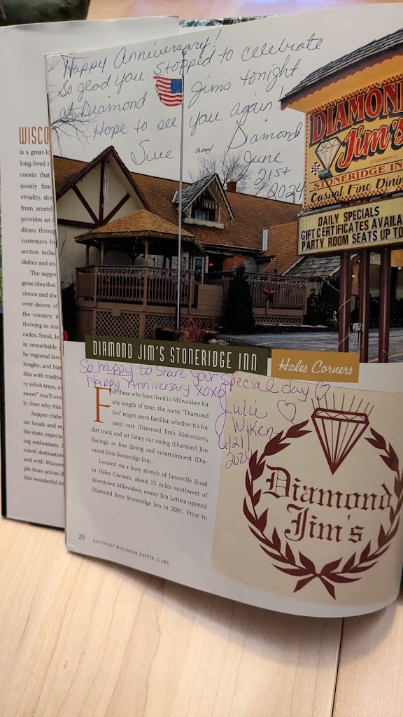 We have been dining at Diamond Jim’s for some two years. It has become one of our favorite restaurants, not only because the food is so delicious, but the owner Sue and her staff are so very kind and the cocktails are always perfect. I can’t say enough about this supper club, now I’m getting hungry.