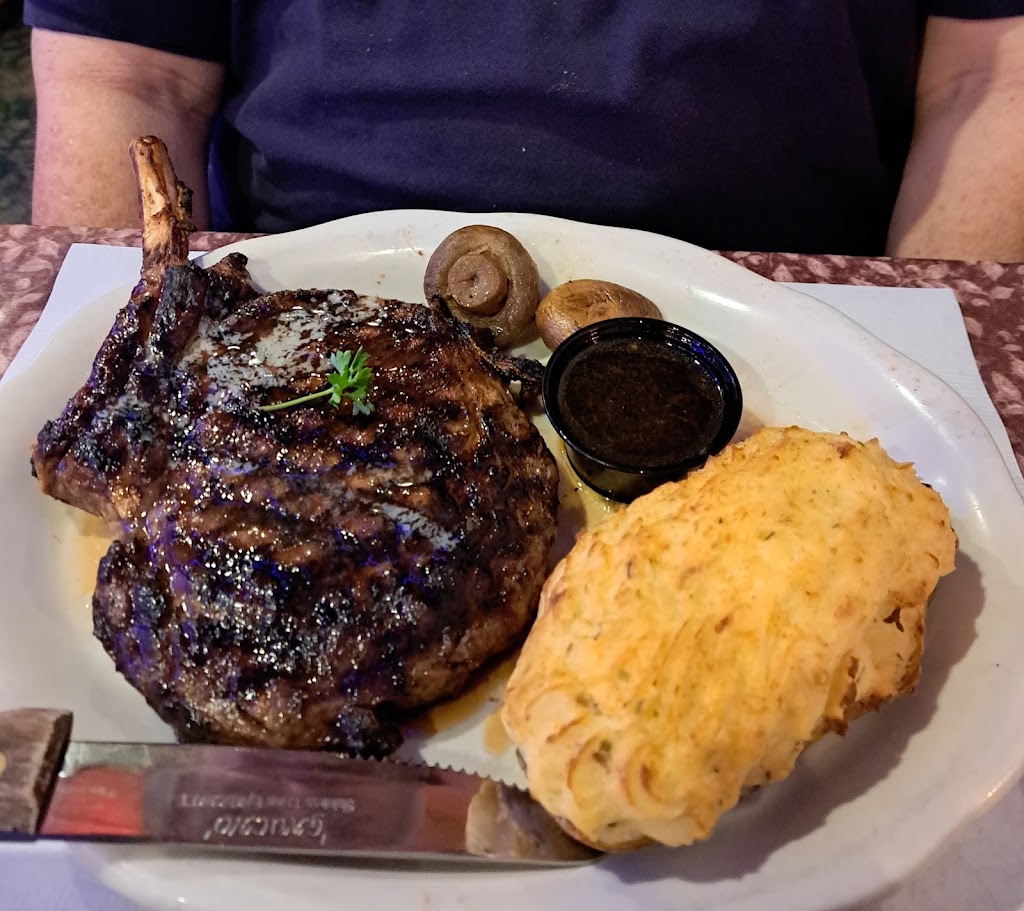First, the entire team at Diamond Jim's treat you like family. A warmer atmosphere you could not have. Inviting from the moment you arrive to the salutations as you depart with a full stomach. Our 1st visit ever. I had the seafood platter (not battered). Scallops-Perfection! Shrimp, a bit overcooked & chewy. My cod filet was huge, but cold around the edges. The twice baked potato truly wonderful! My husband had the bone-in ribeye. It was grilled to Perfection! Beautiful sear, perfect medium center, and his twice baked potato outstanding! My martinis were exceptional. And a shout out to Justin, our waiter, who made our first time at Diamond Jim's, certainly not our last! He was professional and very personable. We will be back. Had it not been for my seafood shortcomings, it would easily have been a 5 star rating!