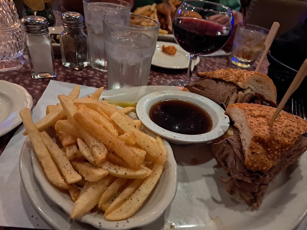 Strange experience Saturday 8PM. My wife and I were looking for a good prime rib place. End of story first: Prime ribs were great despite an order mix-up (King med-rare and Queen medium came out reversed). But French Onion soup had horrid tasting inedible croutons. Overall, the service was quite distracted.